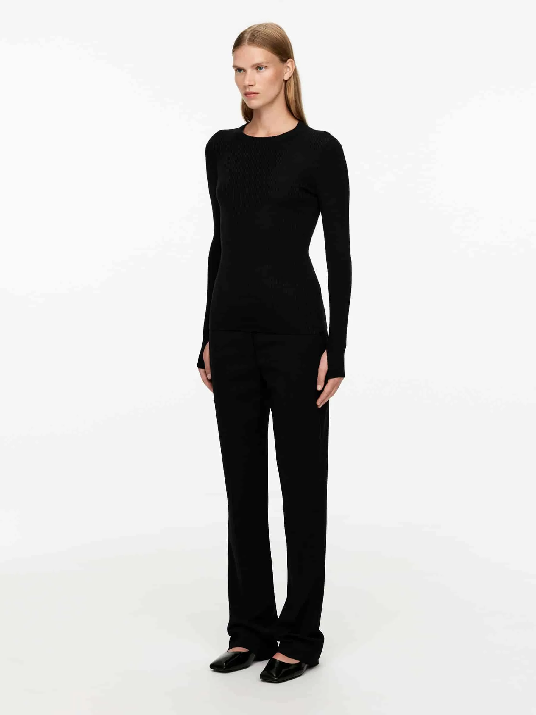 ARKE Damen Rippstrick-Merinooberteil Schwarz