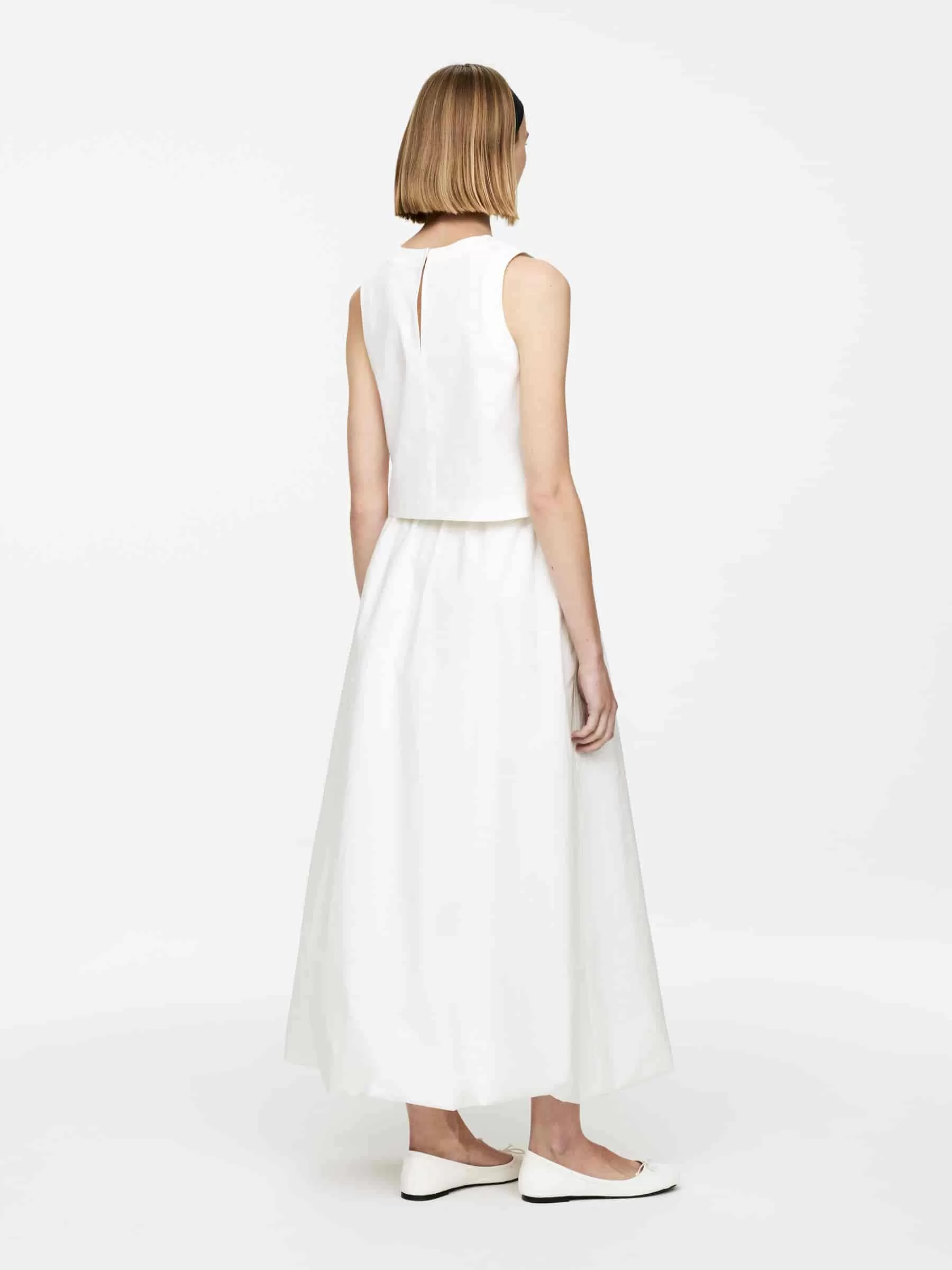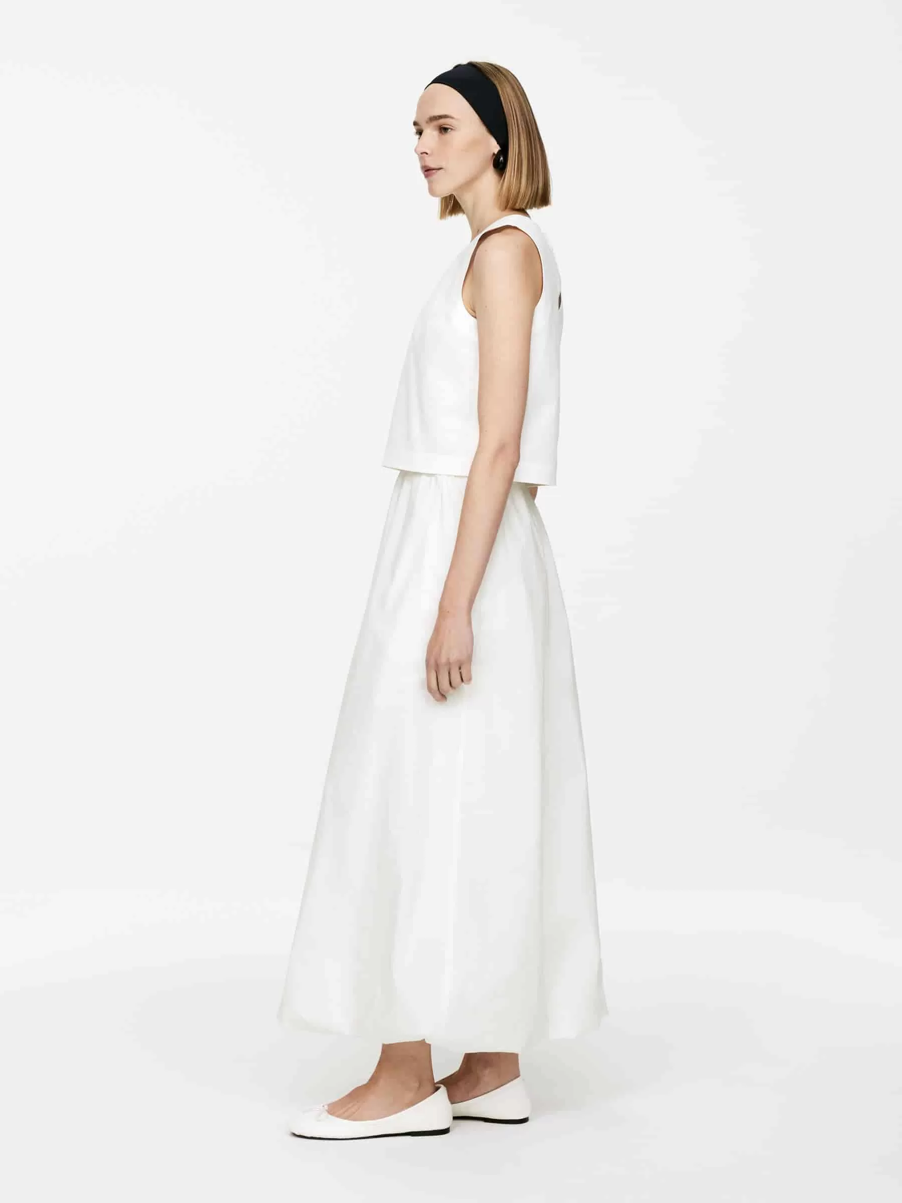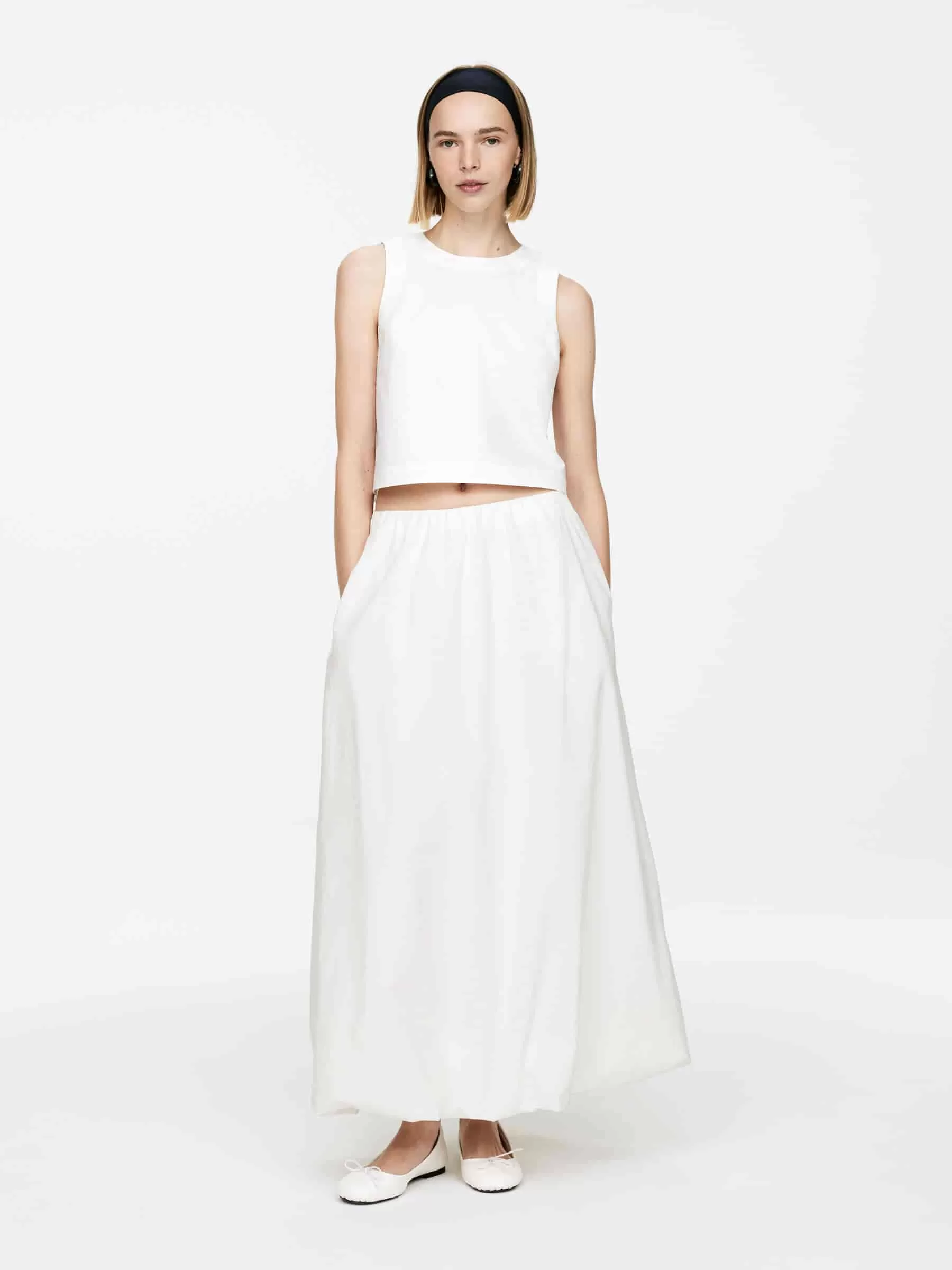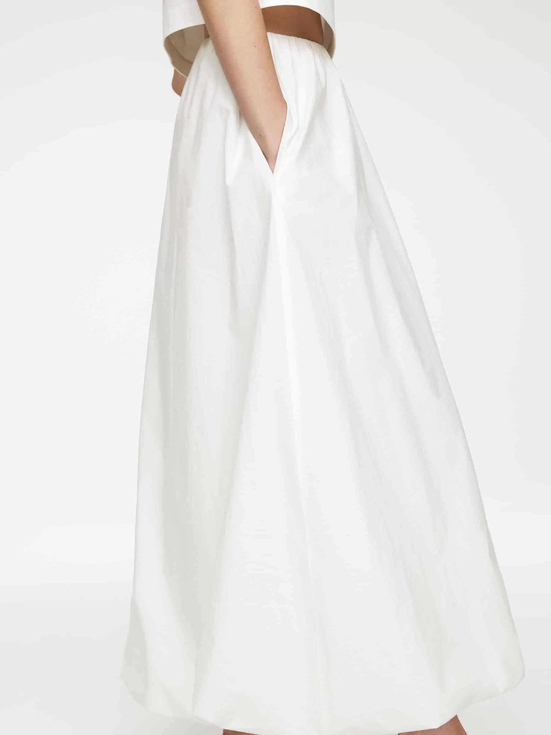 Langer Baumwollrock mit Ballonsaum, Seitentaschen und Gummizug in der Taille.
