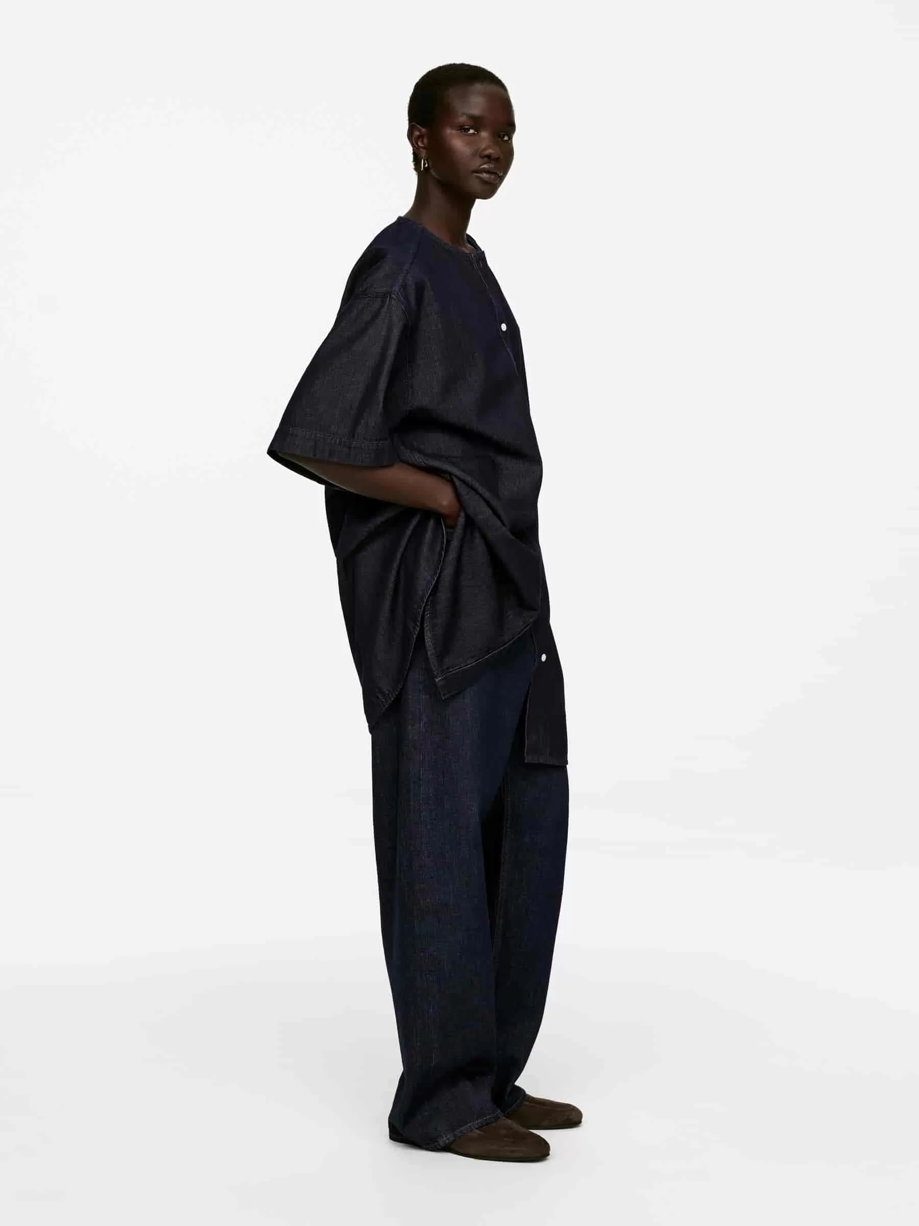 ARKE Damen Rohes Jeanshemd Dunkelblau