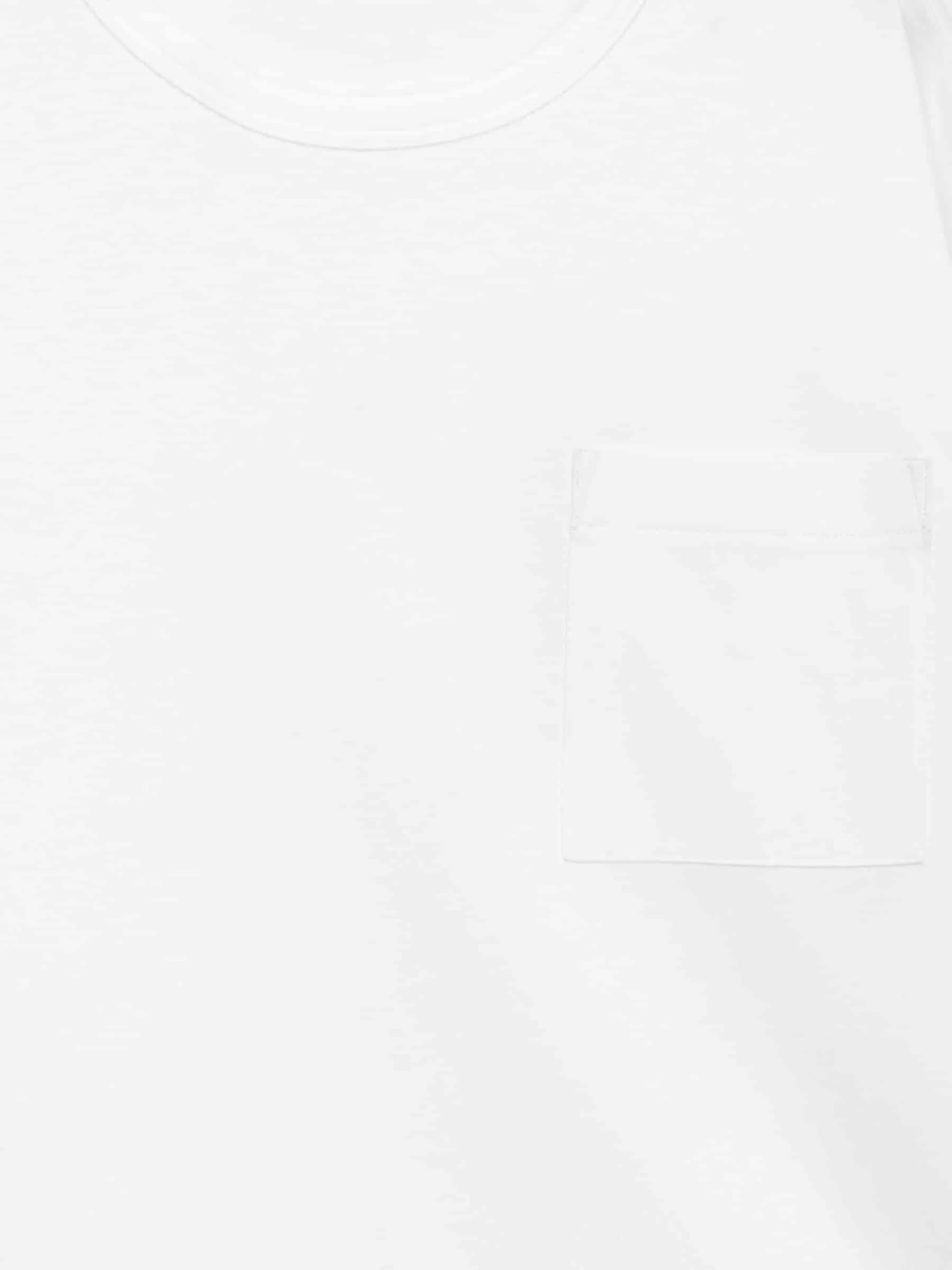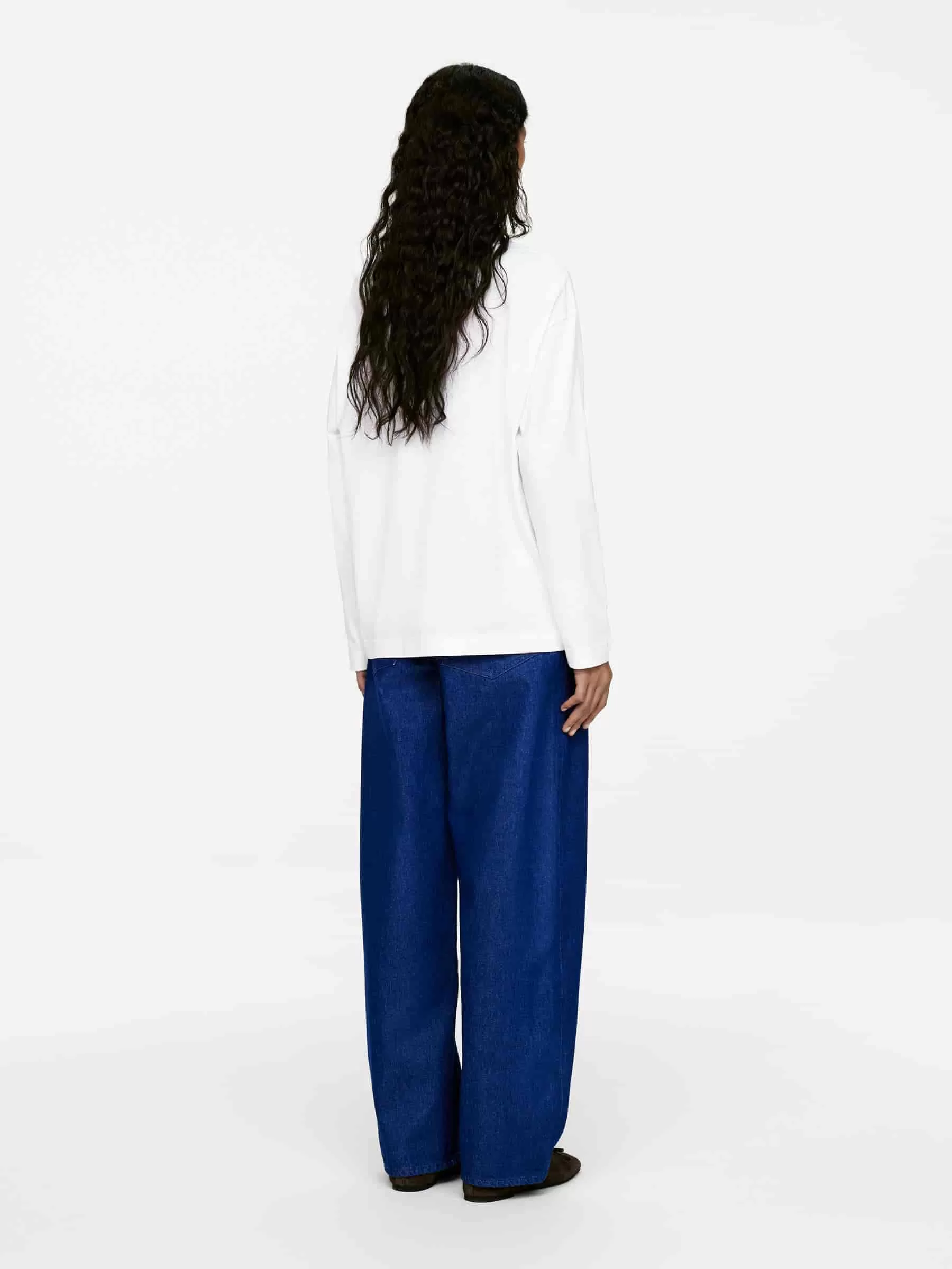 Mittelschweres T-Shirt aus Single-Jersey-Stoff aus Baumwolle. Ein langärmliges Modell mit übergroßer Passform und überschnittenen Schultern. Ausgestattet mit einer einzelnen Brusttasche.