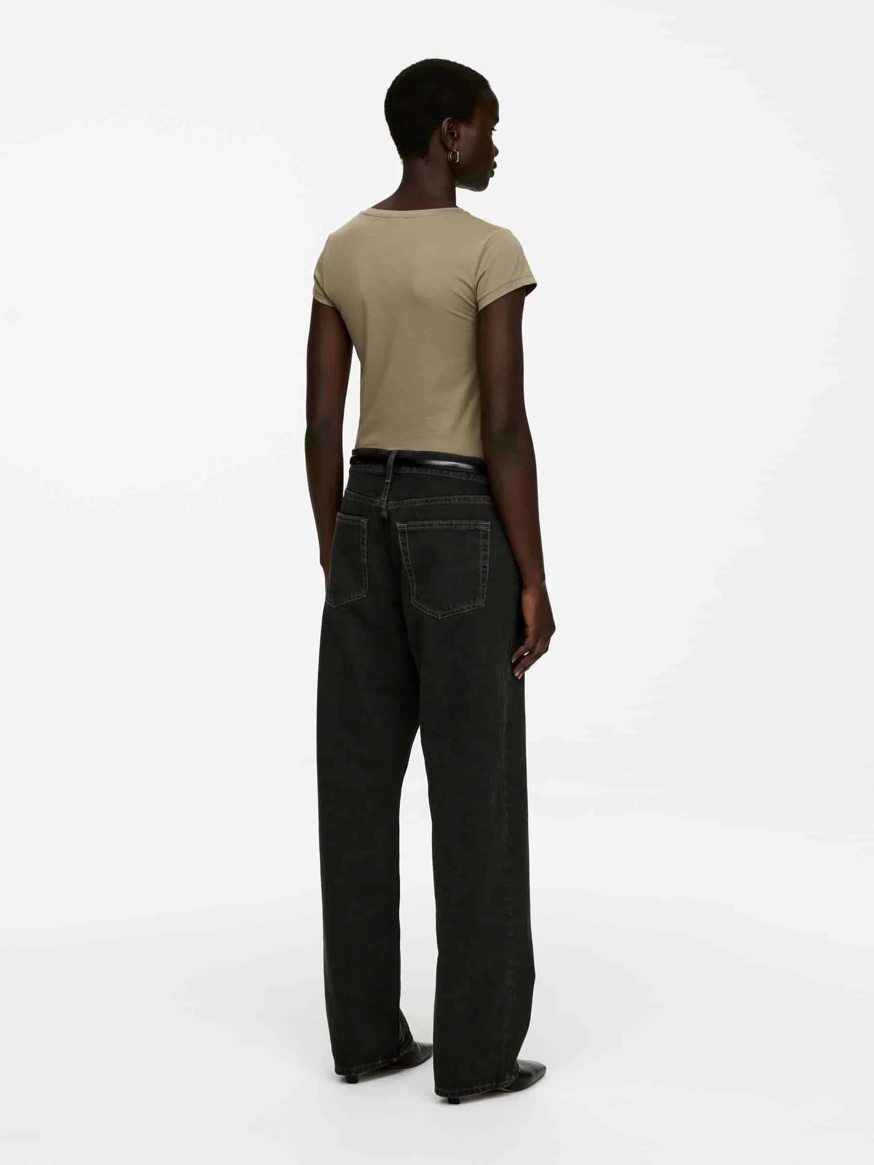 SHORE ist aus nicht dehnbarem Denim gefertigt und hat eine niedrige Taille, eine entspannte Passform und gerade, lockere Beine. Knopfleiste.