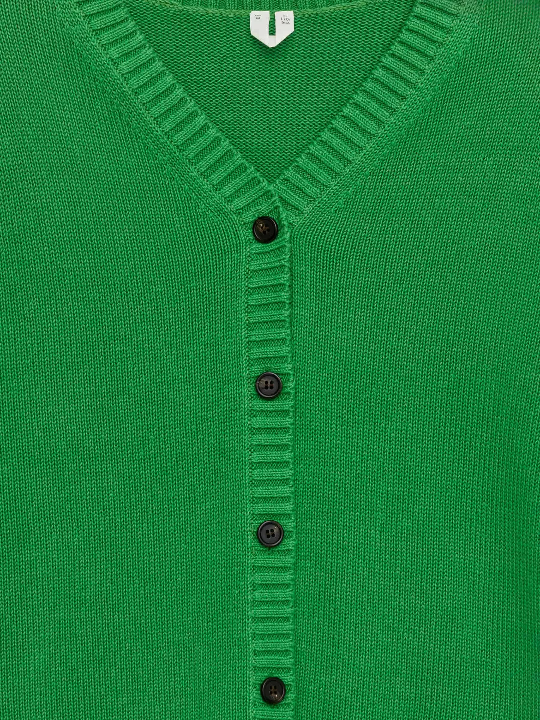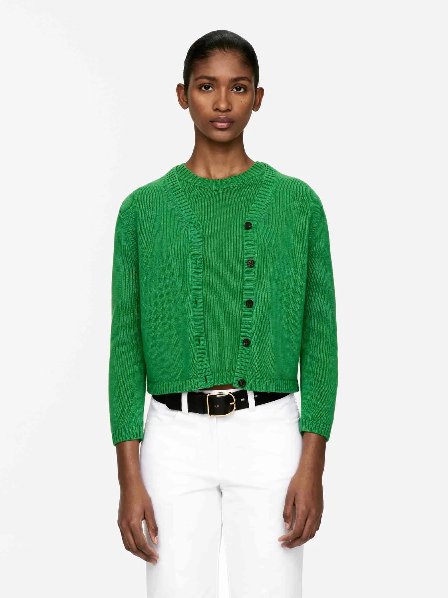 Strickjacke aus Baumwolle mit geschrumpfter Passform, gerippten Abschlüssen und Knopfverschluss.