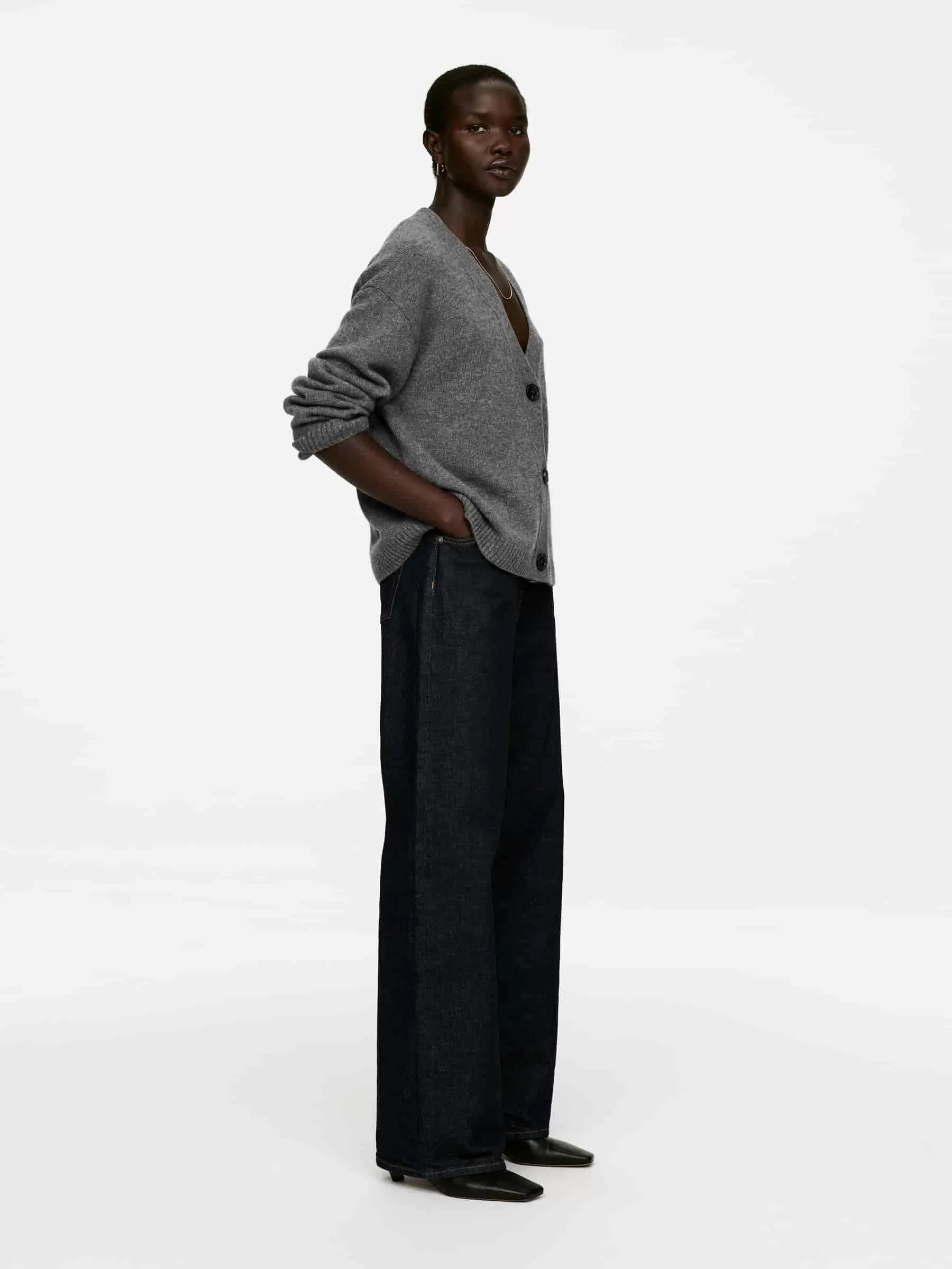 Langärmliger Cardigan aus Kaschmir und einem Wollanteil für zusätzliche Festigkeit. Knopfverschluss und Rippstrickbündchen.