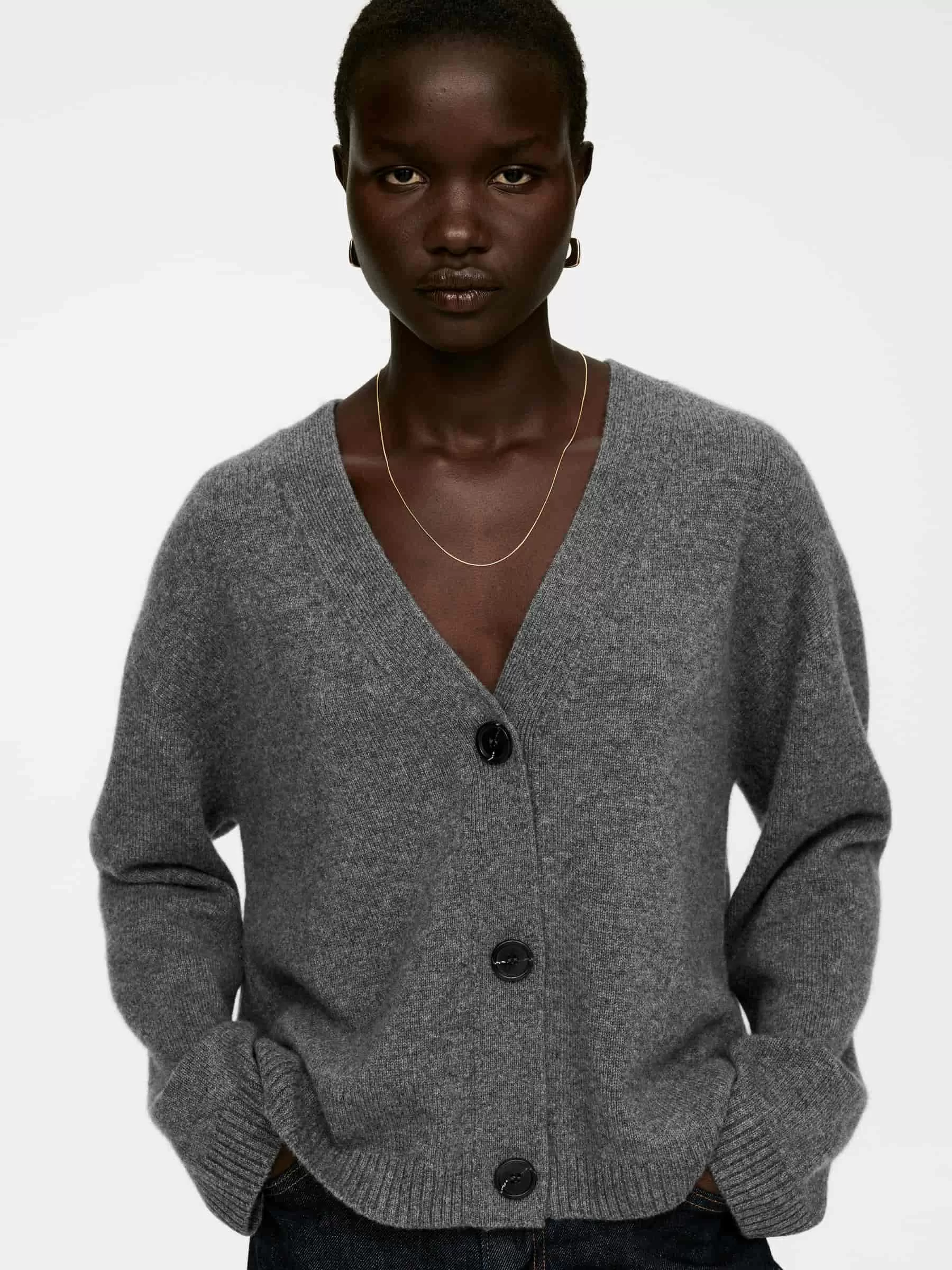 ARKE Damen Strickjacke aus Kaschmirwolle Graue Melange