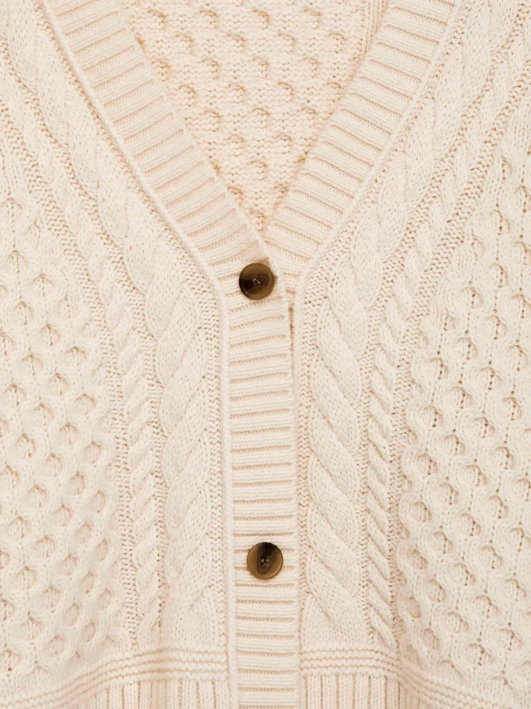 Cardigan mit Zopfmuster aus Wolle. Mit V-Ausschnitt, Drei-Knopf-Verschluss und gerippten Abschlüssen. Normale Passform. Der Cardigan besteht aus 100 % RWS-Wolle (TE-00047206). Produkte, die nach dem Responsible Wool Standard (RWS) zertifiziert sind, enthalten Wollfasern von Farmen, die unabhängig nach Tierschutz- und Landbewirtschaftungsanforderungen zertifiziert sind.