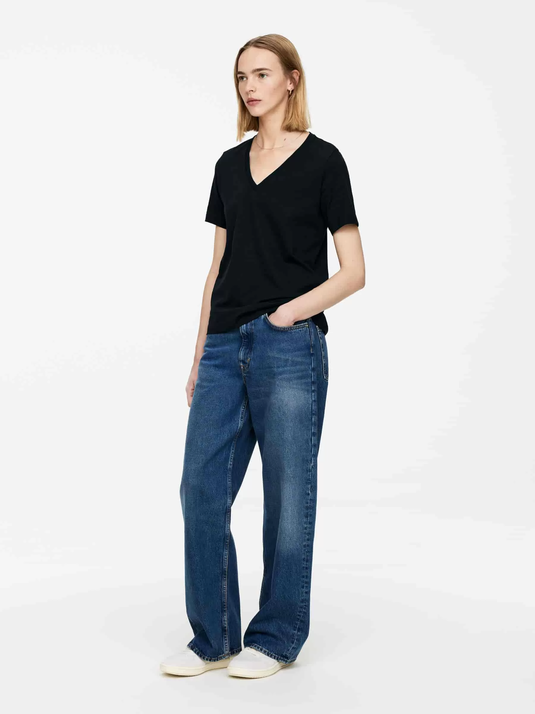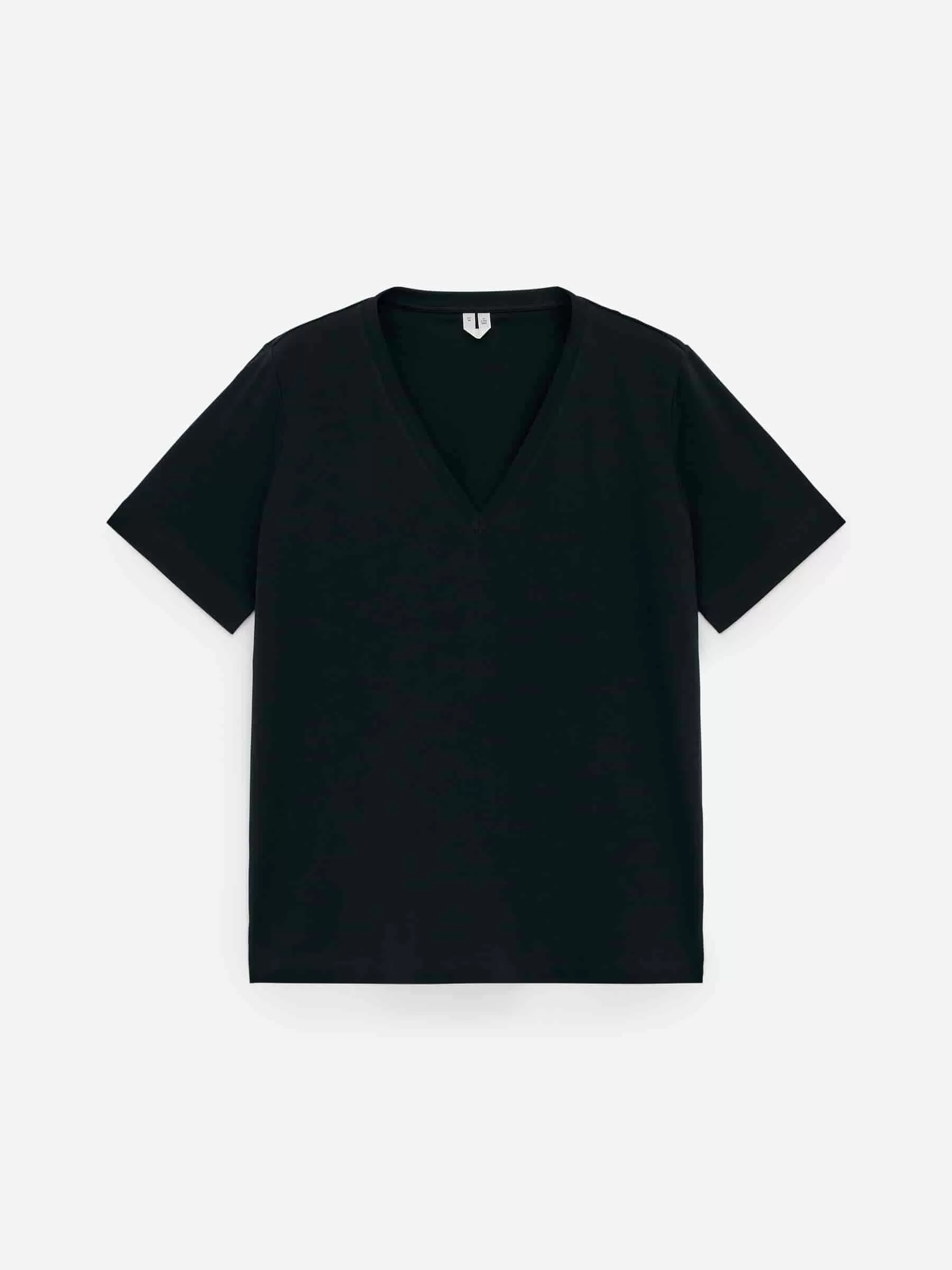 T-Shirt mit V-Ausschnitt aus weichem Baumwolljersey. Normale Passform.