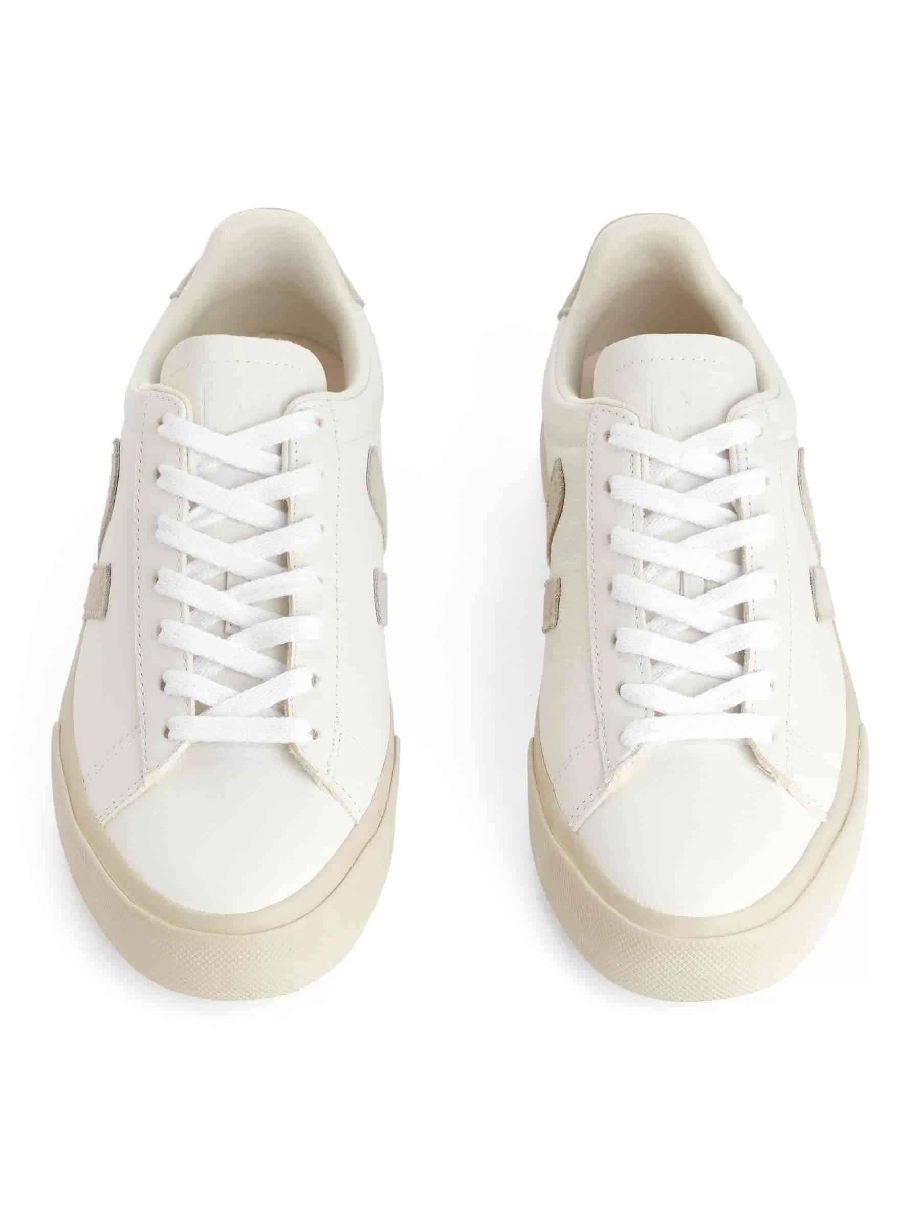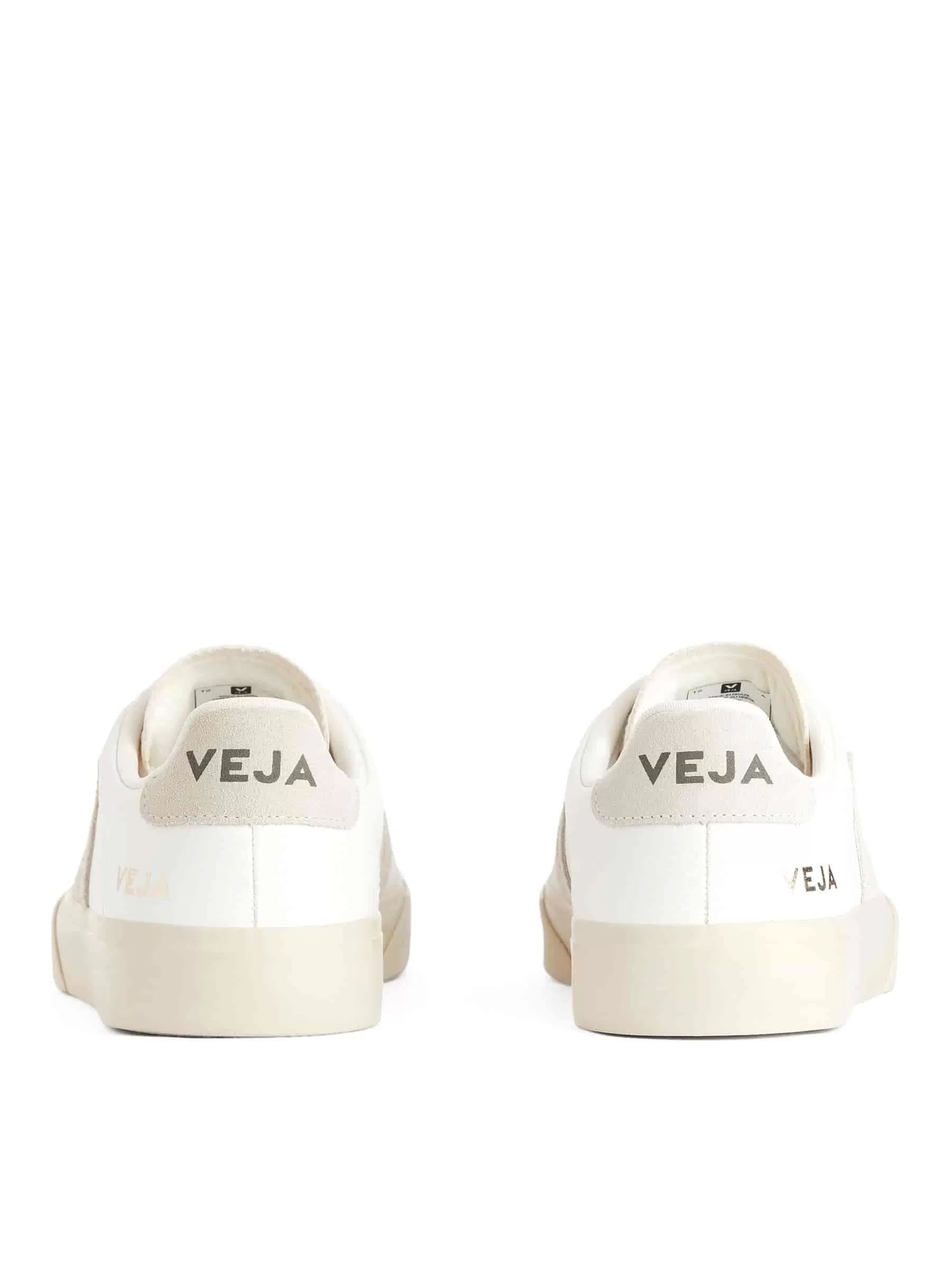 Die Campo-Turnschuhe sind VEJAs beliebter Stil mit einem klaren, minimalistischen Design. Sie haben eine Low-Top-Silhouette und verfügen über ein Obermaterial aus hochwertigem Leder mit genarbter Textur und einem V-Logo-Detail an der Seite.