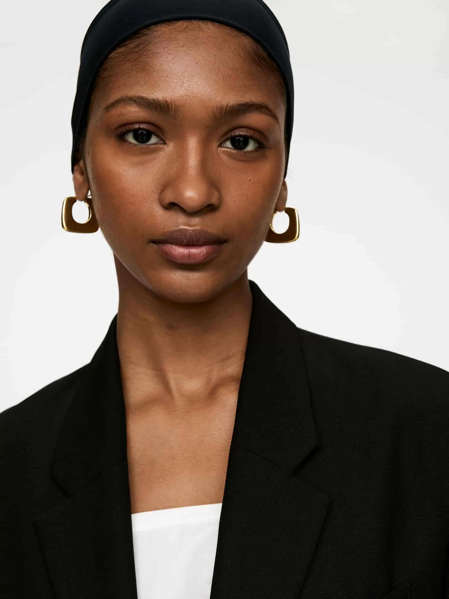 Rechteckige Creolen aus vergoldetem Messing. Mit Verschluss-Rückseite versehen. Breite 3 cm.