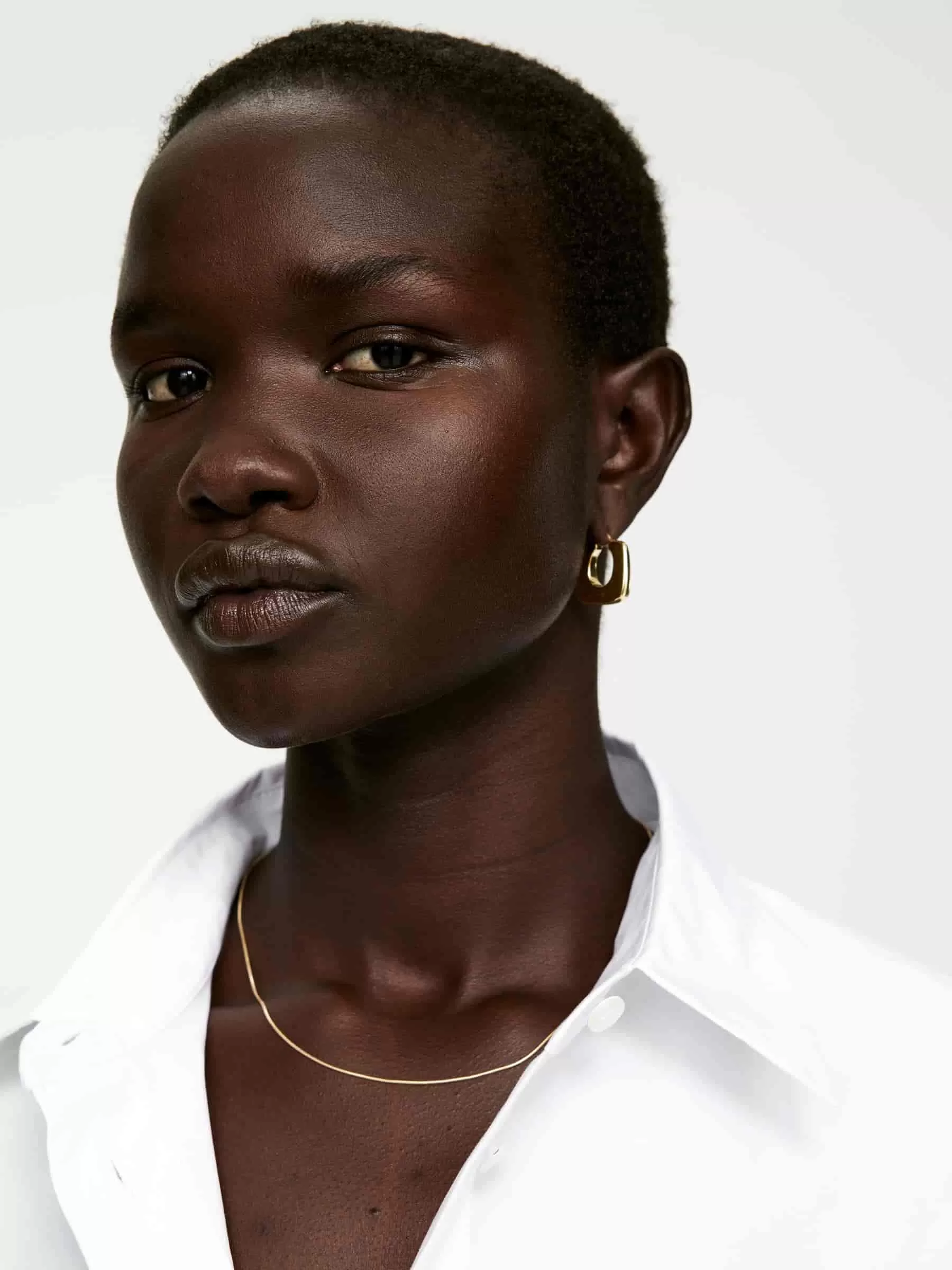 Creolen, die in einer sanft quadratischen Form vom Ohrläppchen herabhängen. Hergestellt aus vergoldetem Messing. Verschluss mit Verschluss. Durchmesser 1,8 cm.