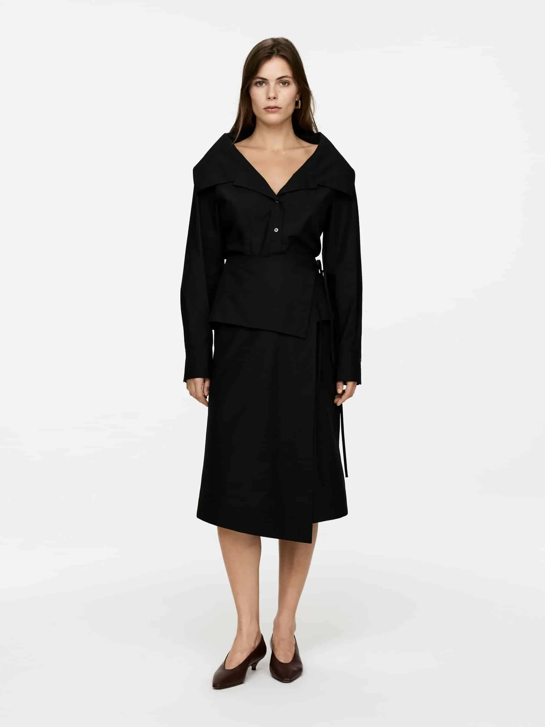 ARKE Damen Wickelrock aus Popeline Schwarz