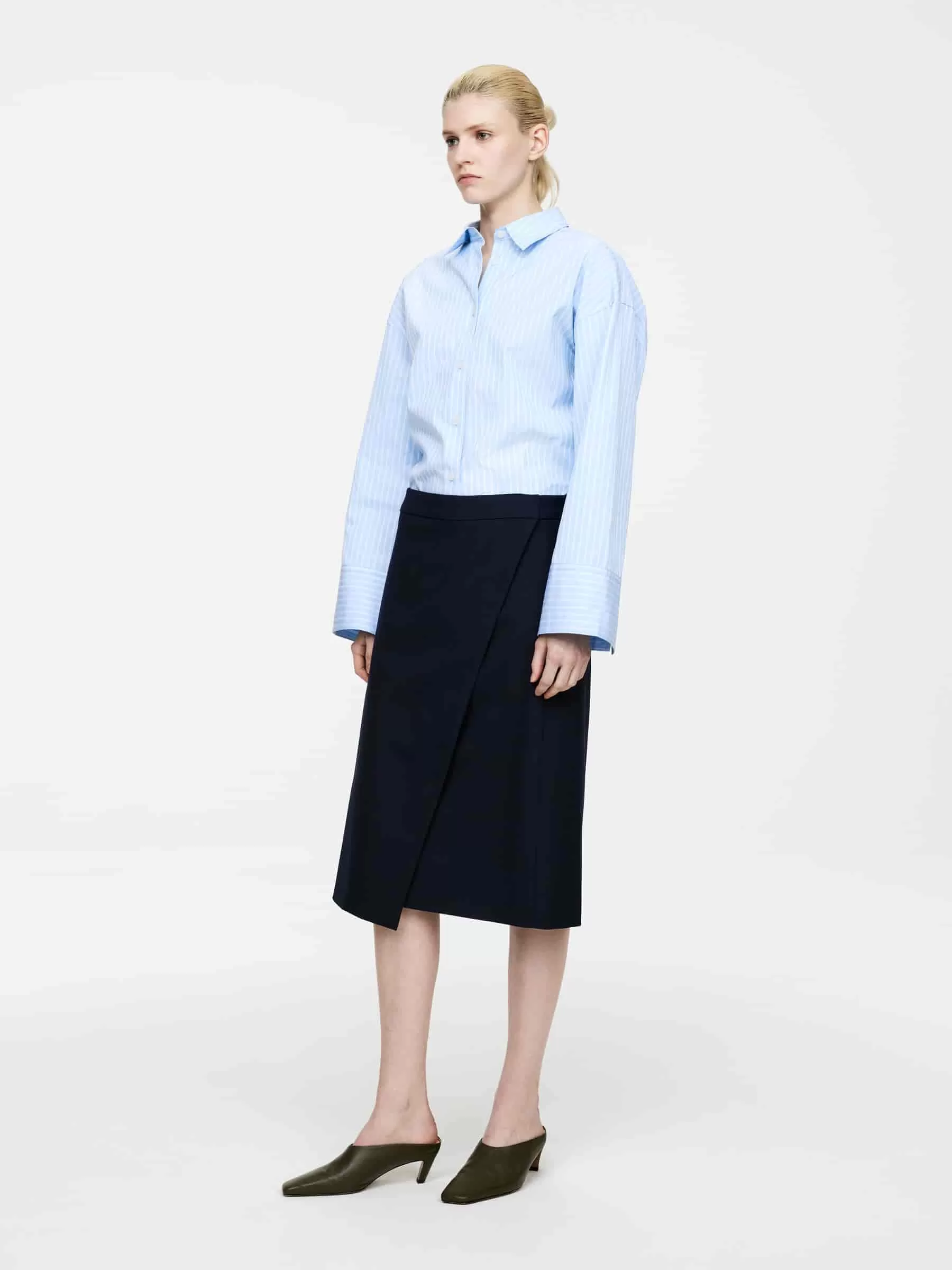 ARKE Damen Wickelrock aus Wolle Dunkelblau