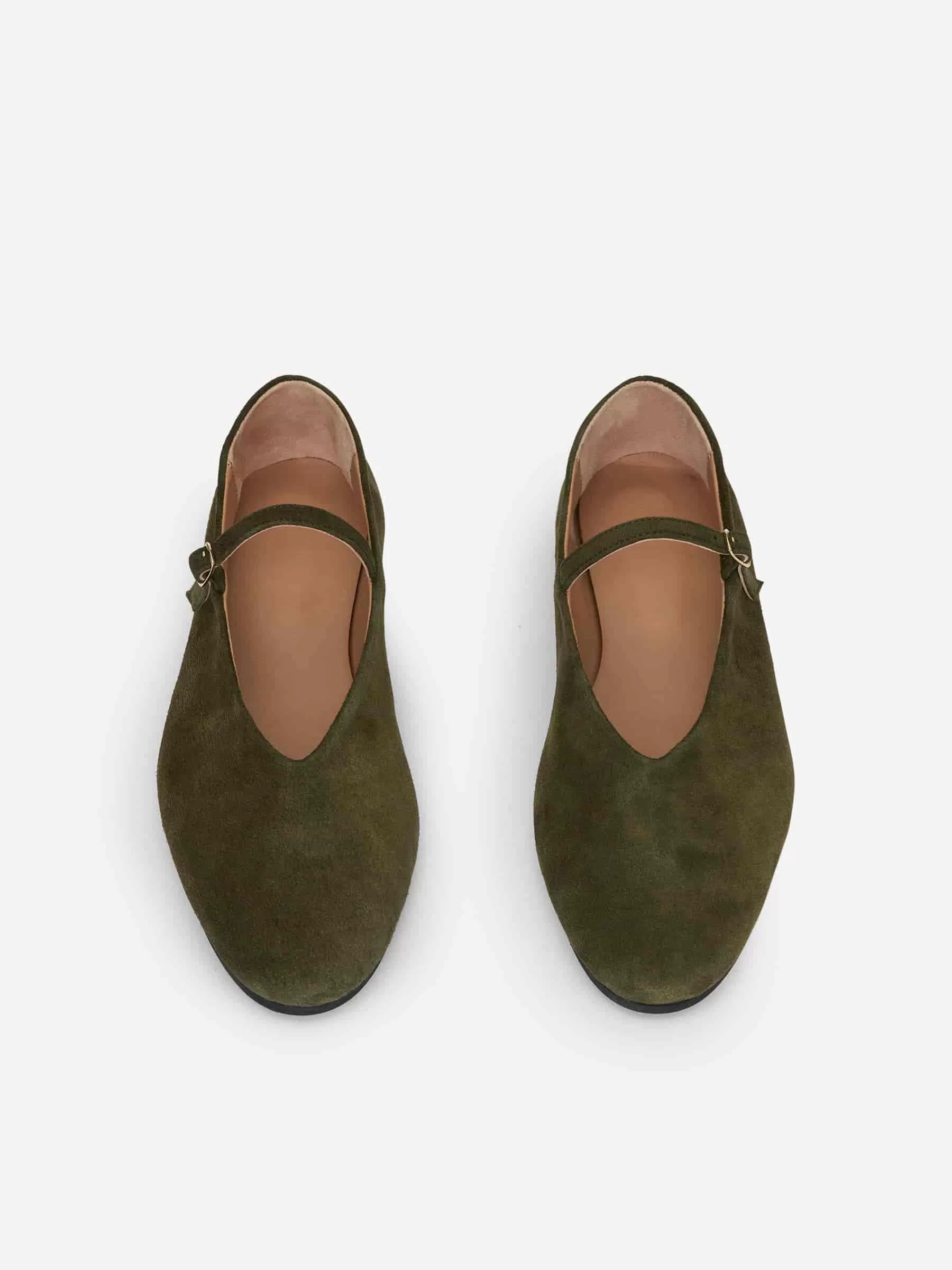 Mary-Jane-Ballerinas aus Wildleder. Detailliert mit einem Schnallenriemen.