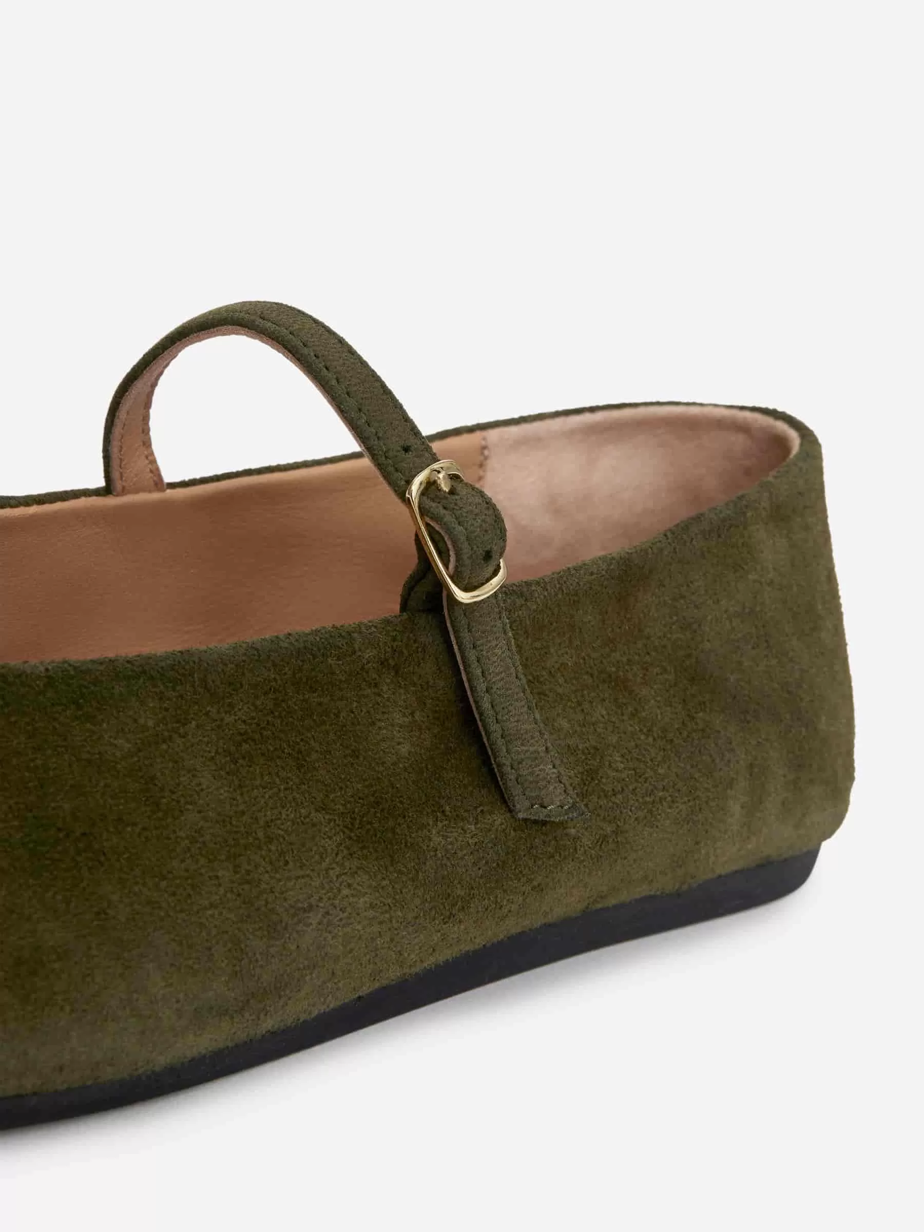 ARKE Damen Wildleder-Mary-Jane-Flats Khakigrün