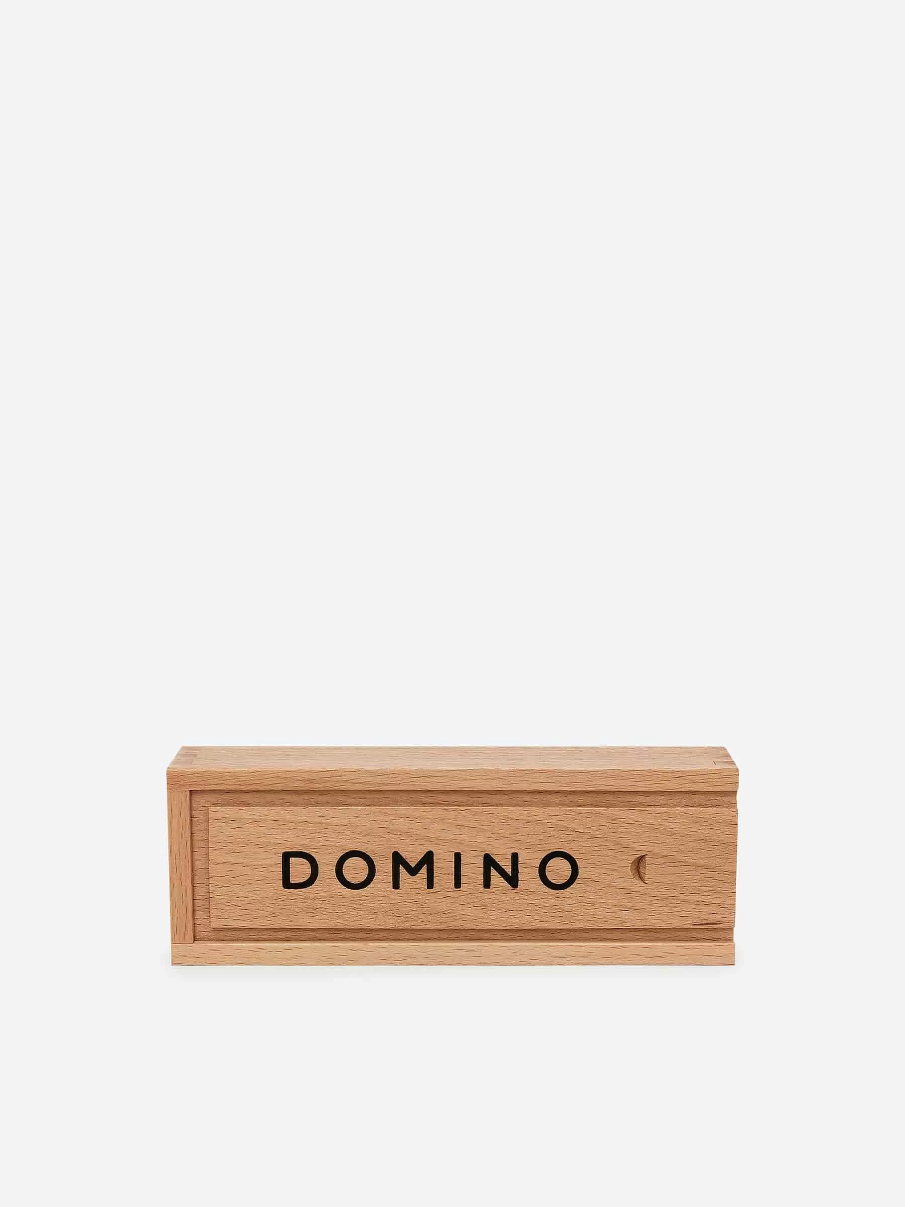 Kleines Dominospiel von Goki. 28 Dominosteine in einer Holzkiste.