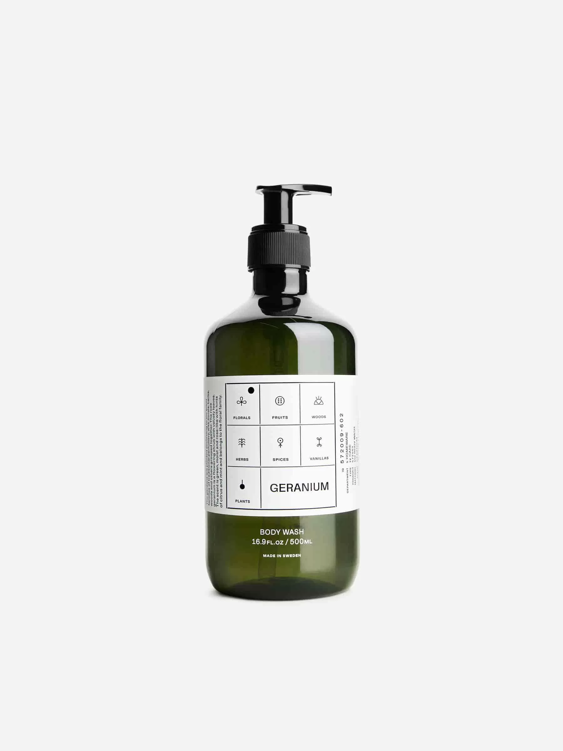 Flüssiges Duschgel, hergestellt in Schweden mit Inhaltsstoffen, die von der nordischen Flora inspiriert sind. Schäumt sich zu einem cremigen Schaum auf, der die Haut sanft reinigt und sie frisch, mit Feuchtigkeit versorgt und leicht parfümiert hinterlässt. Geranie hat einen grünen und rosenartigen Duft mit einem Hauch von Zitrusfrüchten und Minze. 500 ml.