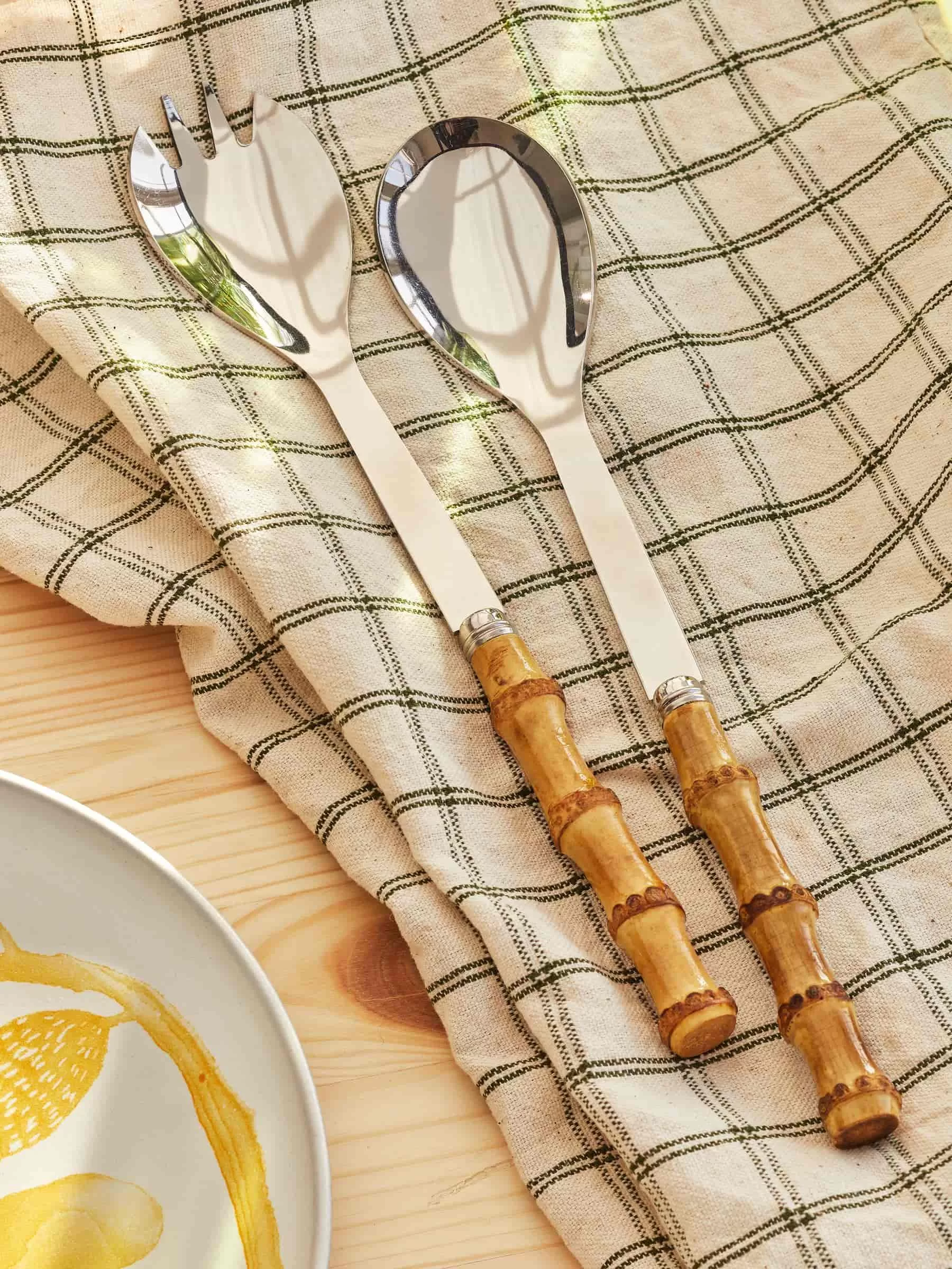 Dieses schöne zweiteilige Set von French Sabre Paris ist zum Servieren von Salaten konzipiert. Ideal sowohl für den täglichen Gebrauch als auch für festliche Zusammenkünfte. Die Konstruktion aus 18/10-Edelstahl und Bambus verleiht Ihrer Tischdekoration einen haptischen Reiz.