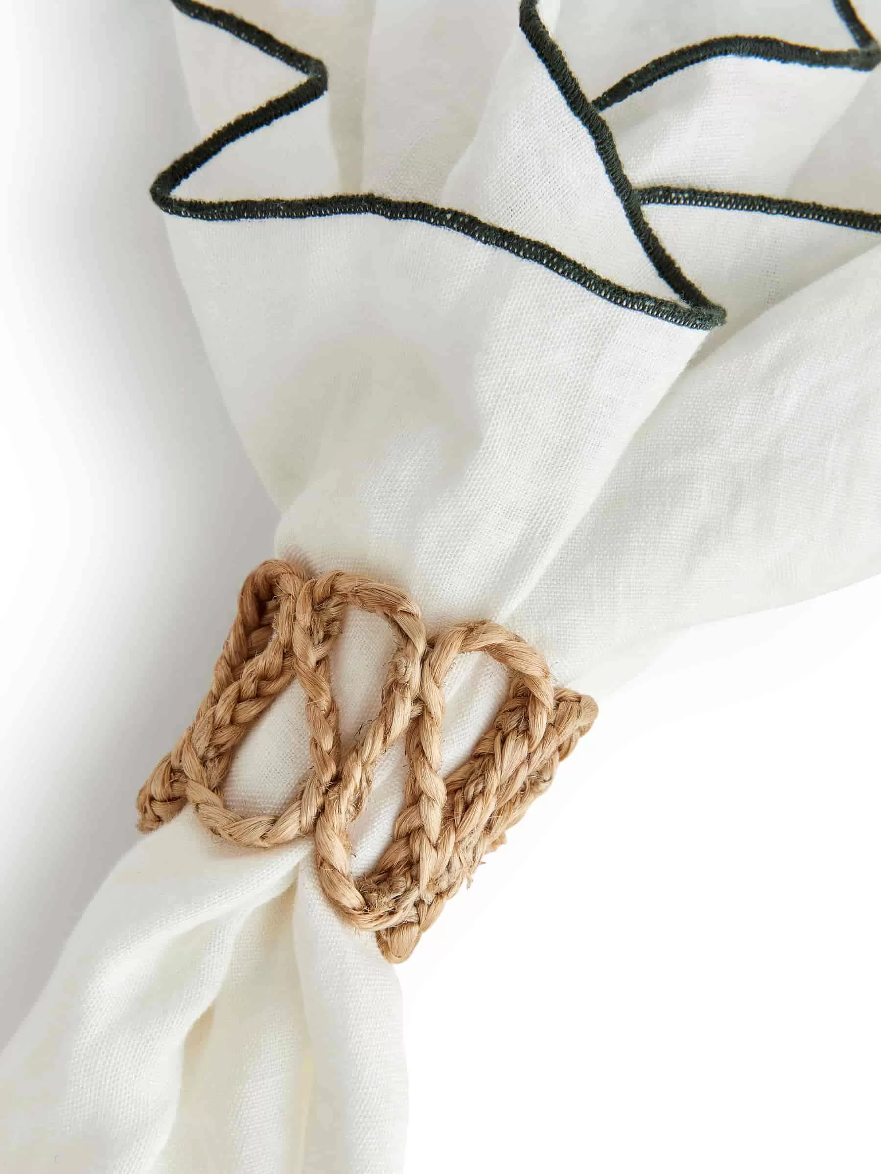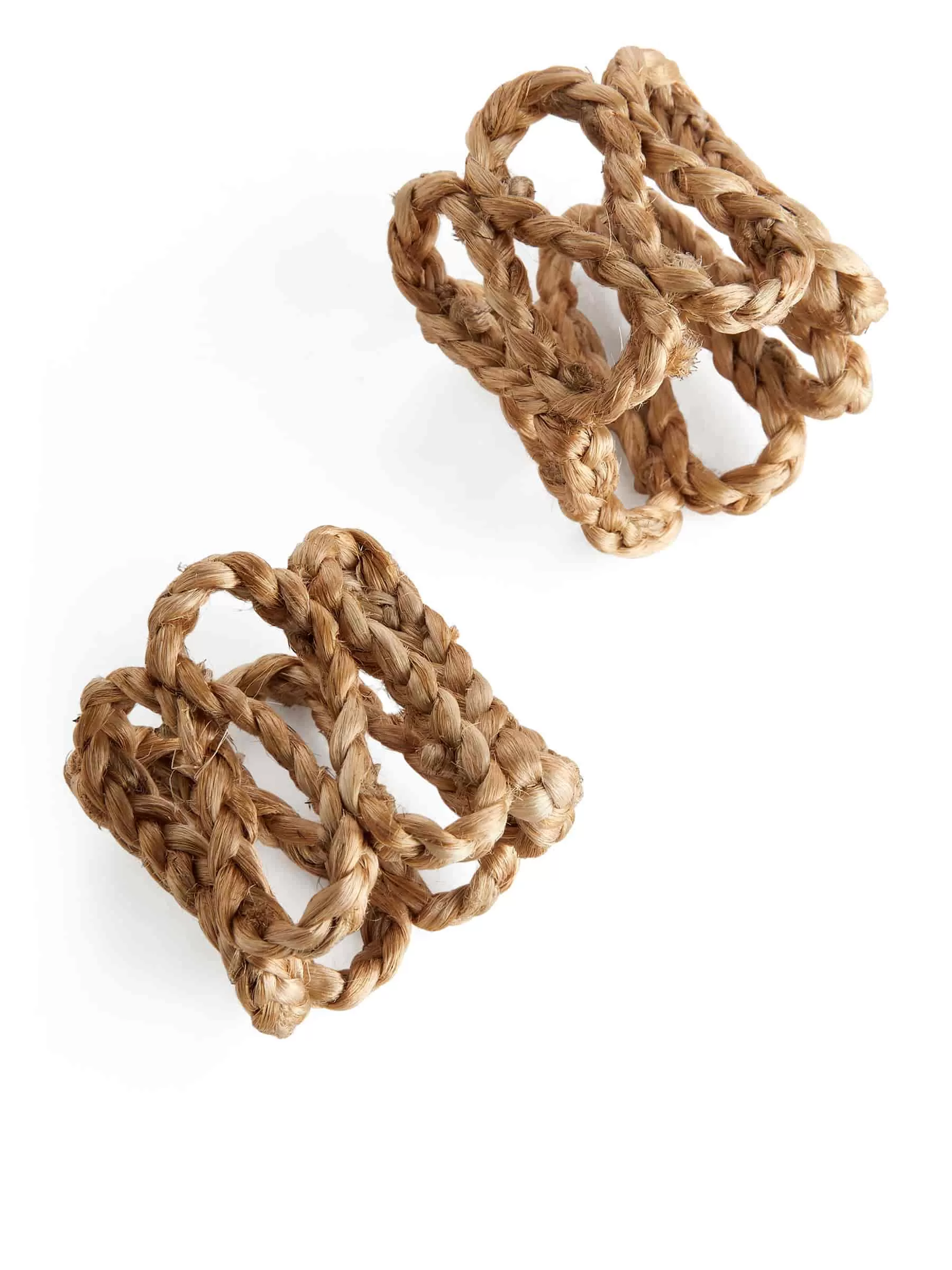 Serviettenringe aus geflochtener Jute. Breite 4,4 cm, Höhe 4,6 cm, Durchmesser 4,4 cm. 2er-Set.
