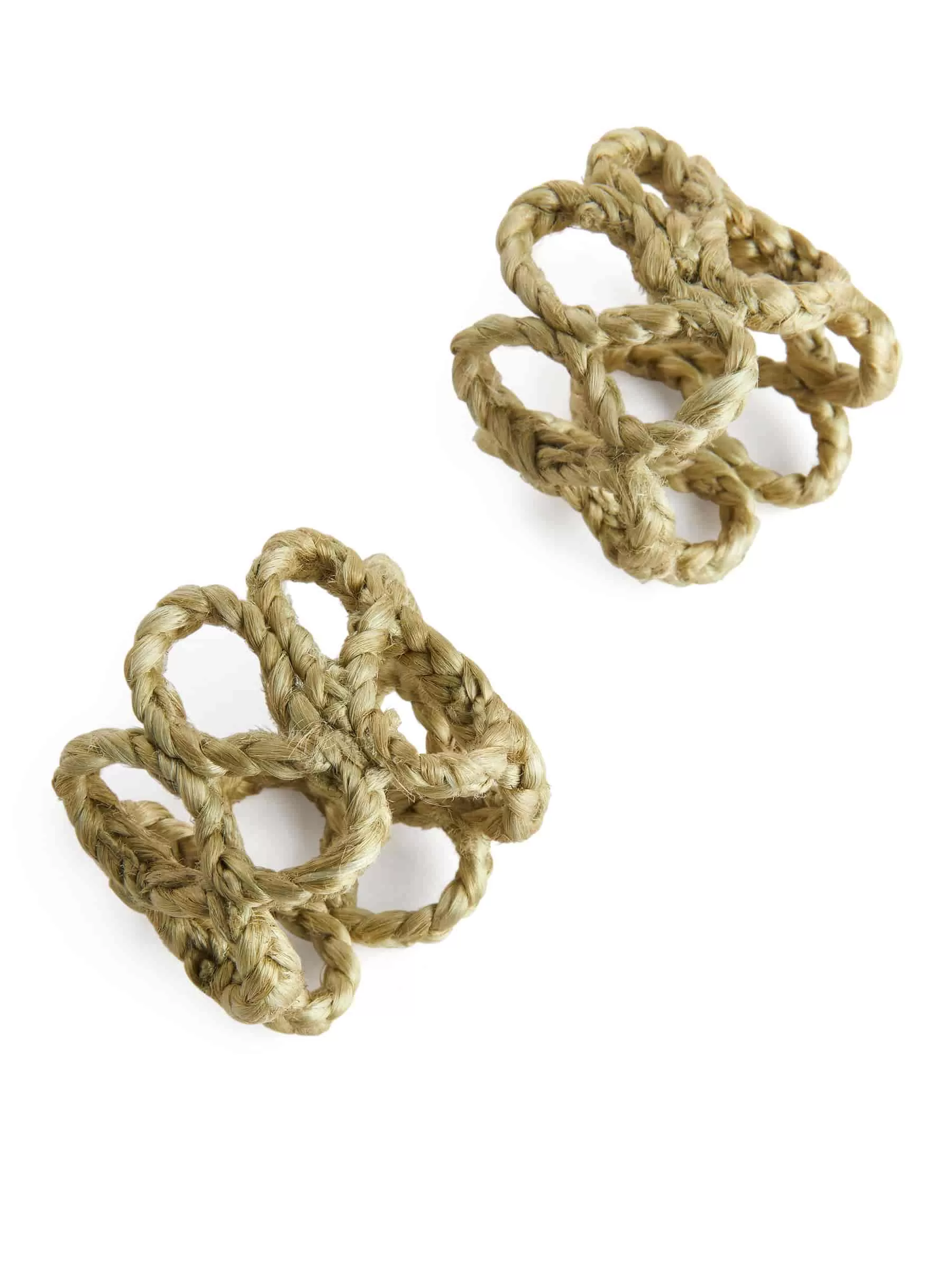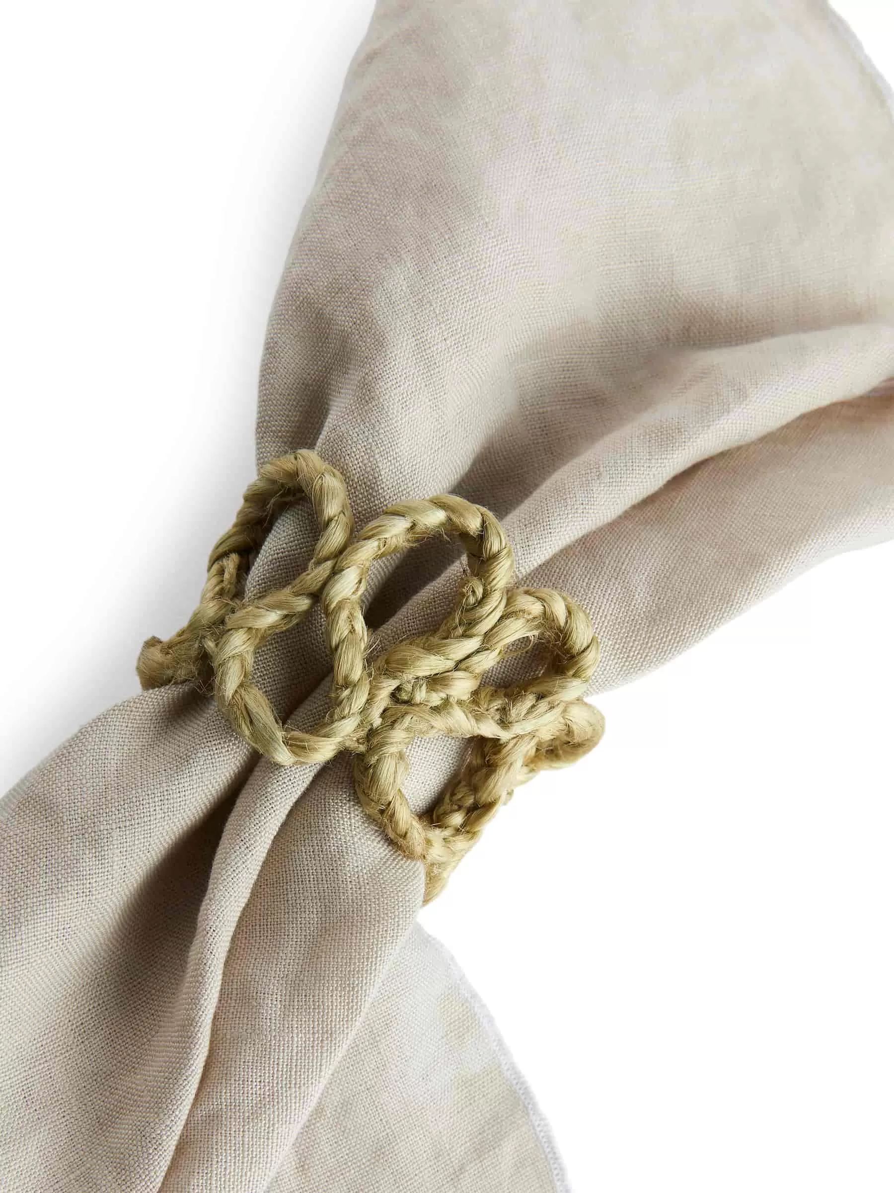 Serviettenringe aus geflochtener Jute. Breite 4,4 cm, Höhe 4,6 cm, Durchmesser 4,4 cm. 2er-Set.