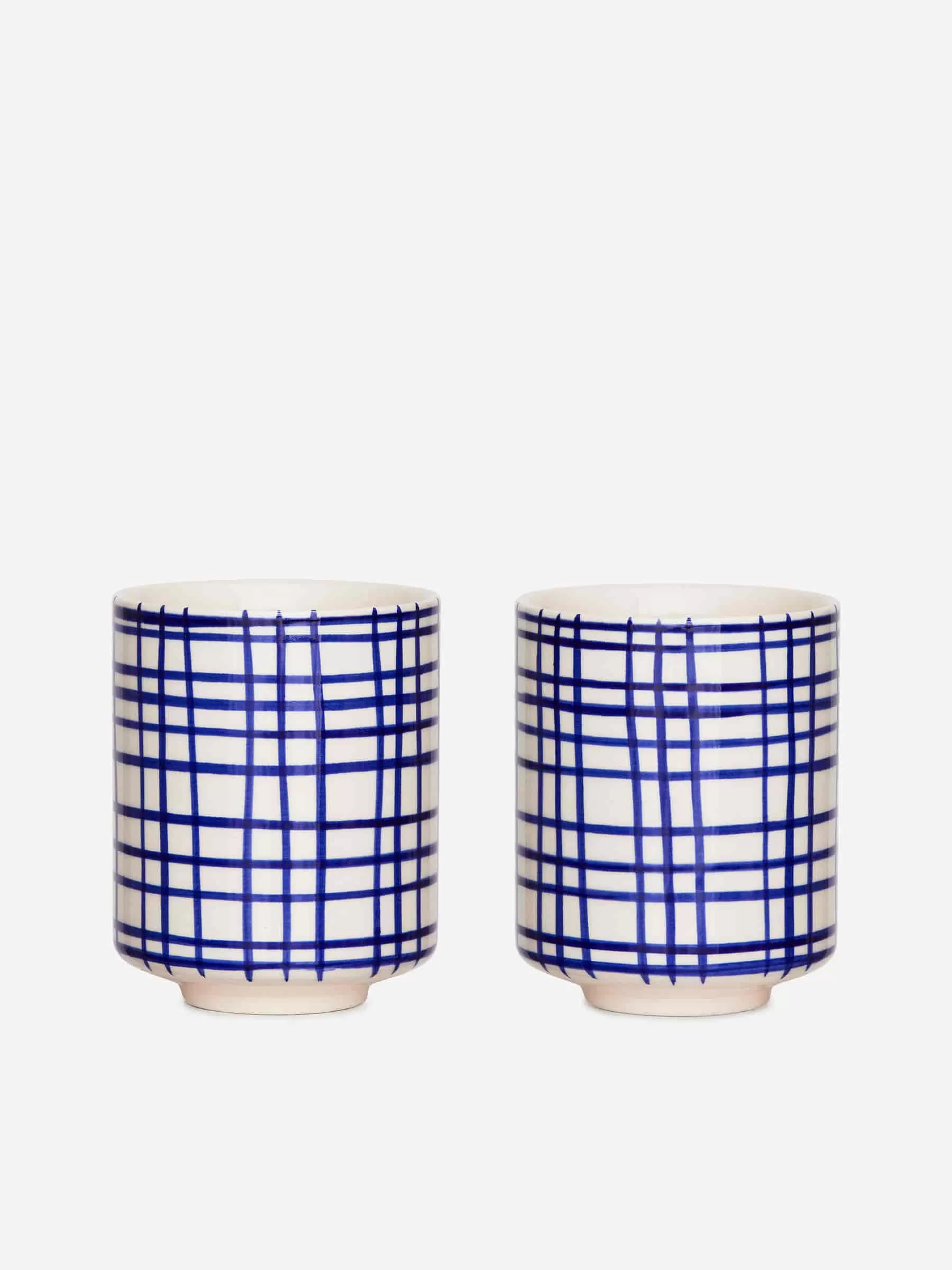 Becher aus vollglasiertem Steingut. Jedes Produkt hat ein einzigartiges Finish, da der Herstellungsprozess teilweise von Hand erfolgt. Höhe 10 cm, Durchmesser 7,7 cm. Verkauft als 2er-Set. Spülmaschinenfest.