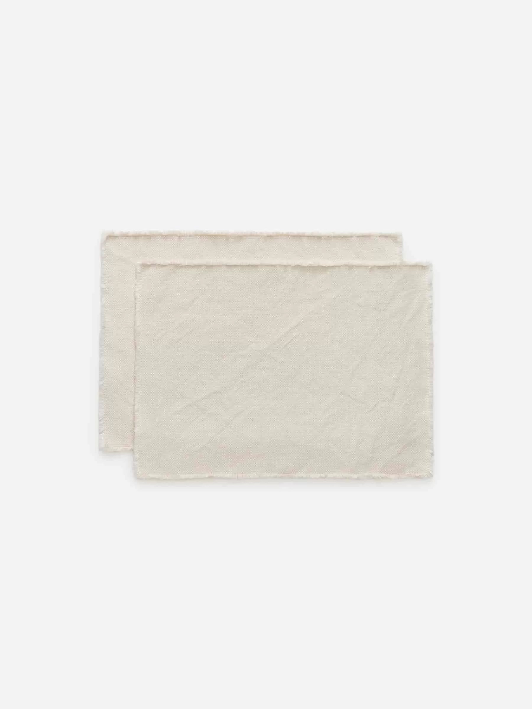 ARKE Haushaltswaren Tischset mit ausgefransten Kanten, 2er-Set Cremefarben