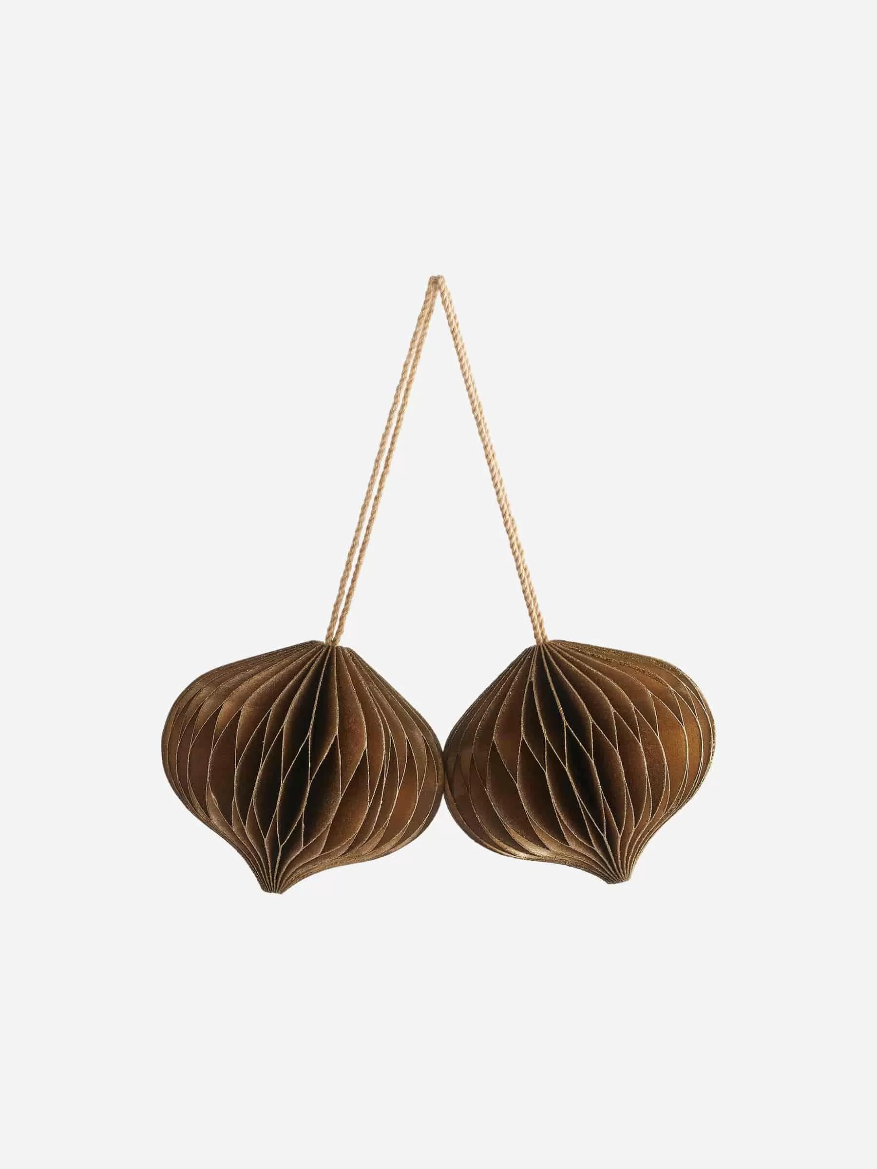 Wabenornamente, handgefertigt aus stabilem Papier. Eine Baumwollschnur zum einfachen Aufhängen. Zweier-Set. Durchmesser 6 cm.