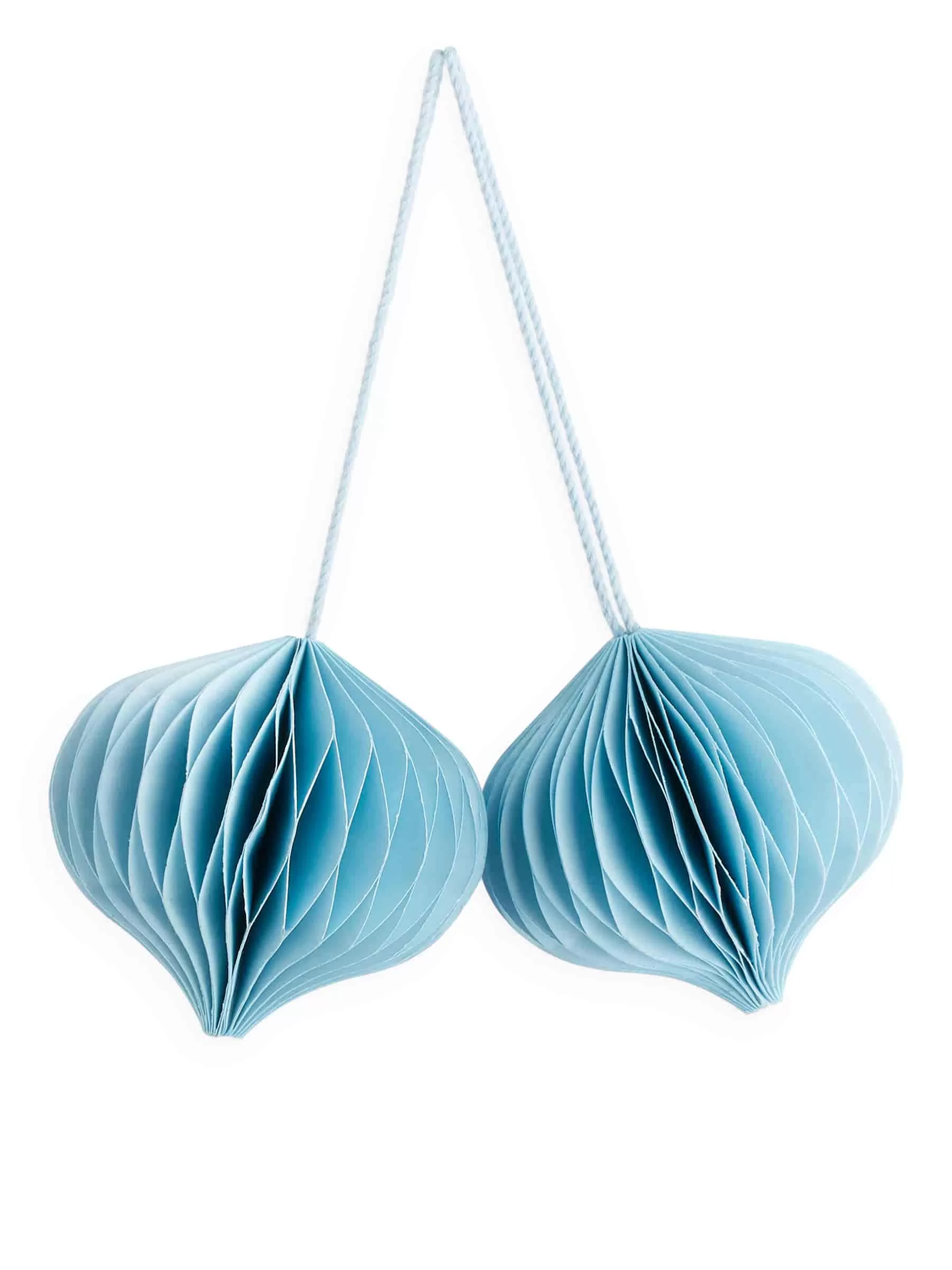 Wabenornamente, handgefertigt aus stabilem Papier. Eine Baumwollschnur zum einfachen Aufhängen. Zweier-Set. Durchmesser 6 cm.