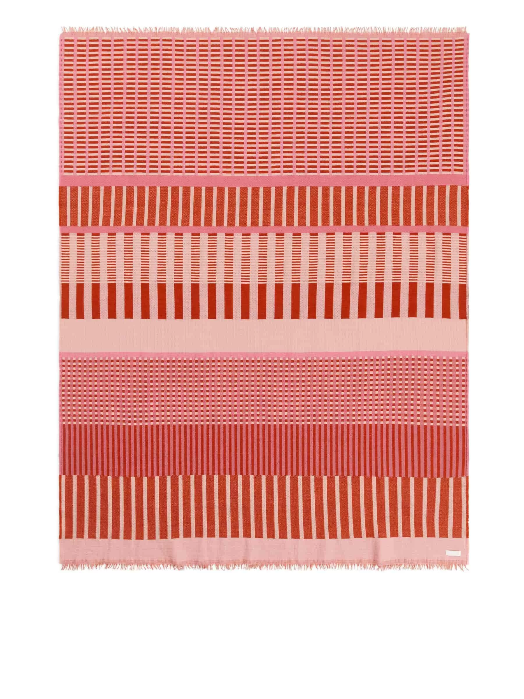 Decke aus Wolle. Detailliert mit Fransen an den kürzeren Kanten. Maße 130 cm x 70 cm. Diese Decke enthält 100 % RWS-Wolle, zertifiziert durch die Kontrollunion 872195. Produkte, die nach dem Responsible Wool Standard (RWS) zertifiziert sind, enthalten Wollfasern von Farmen, die unabhängig nach Tierschutz- und Landbewirtschaftungsanforderungen zertifiziert sind.