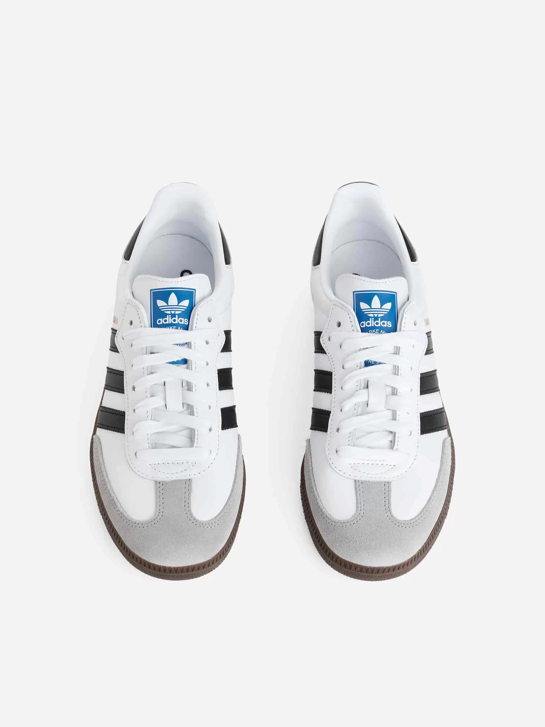 Der klassische adidas Samba verfügt über ein Obermaterial aus weichem Leder, Wildlederüberzüge, gezackte 3-Streifen und eine Gummisohle.