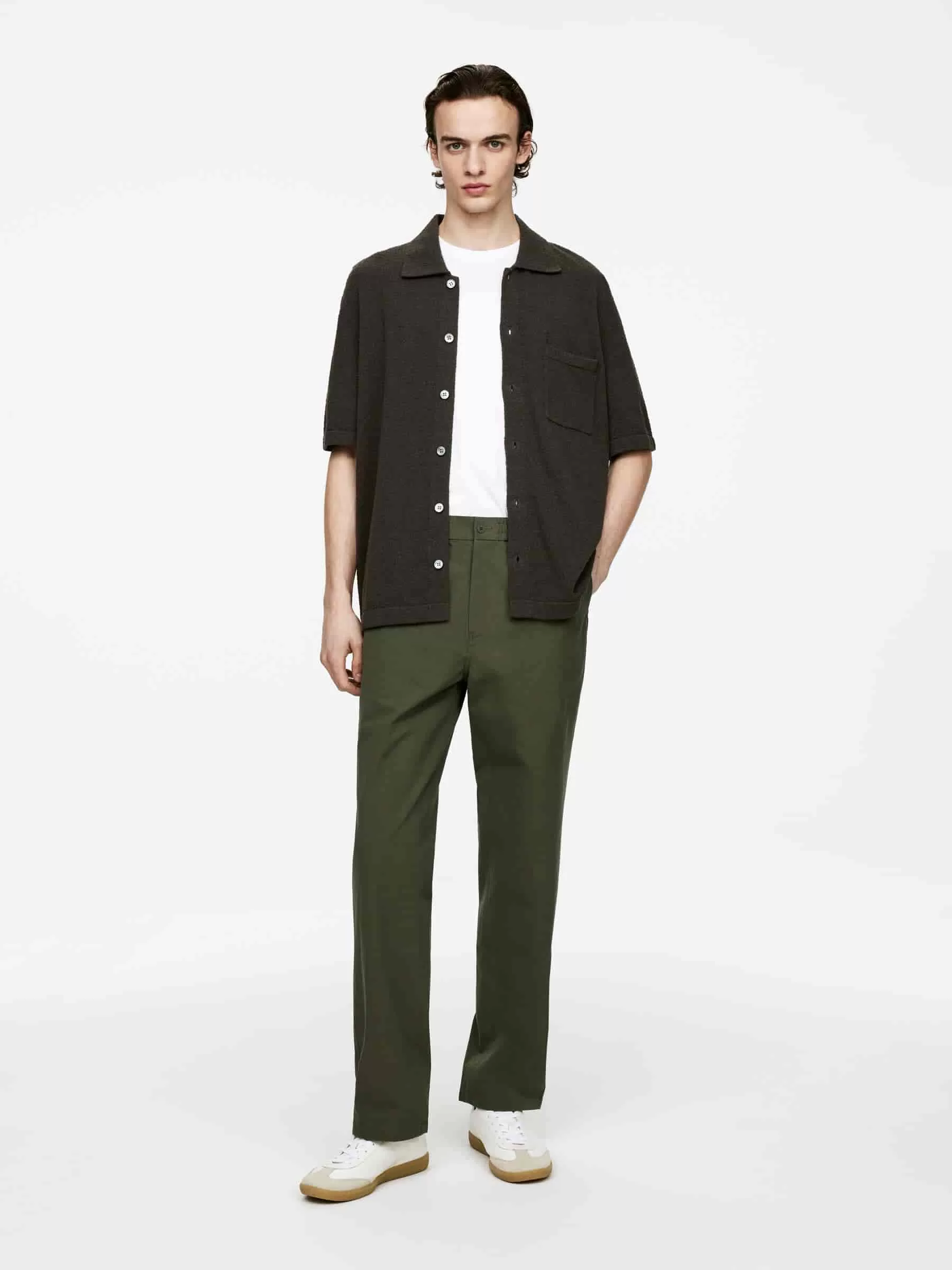 Baumwollhose mit innenliegendem Kordelzug und Gummizug in der Taille. Knopfverschluss und Reißverschluss. Schnitt für eine normale Passform mit geradem Bein. Schräge Vordertaschen und aufgesetzte Taschen hinten.