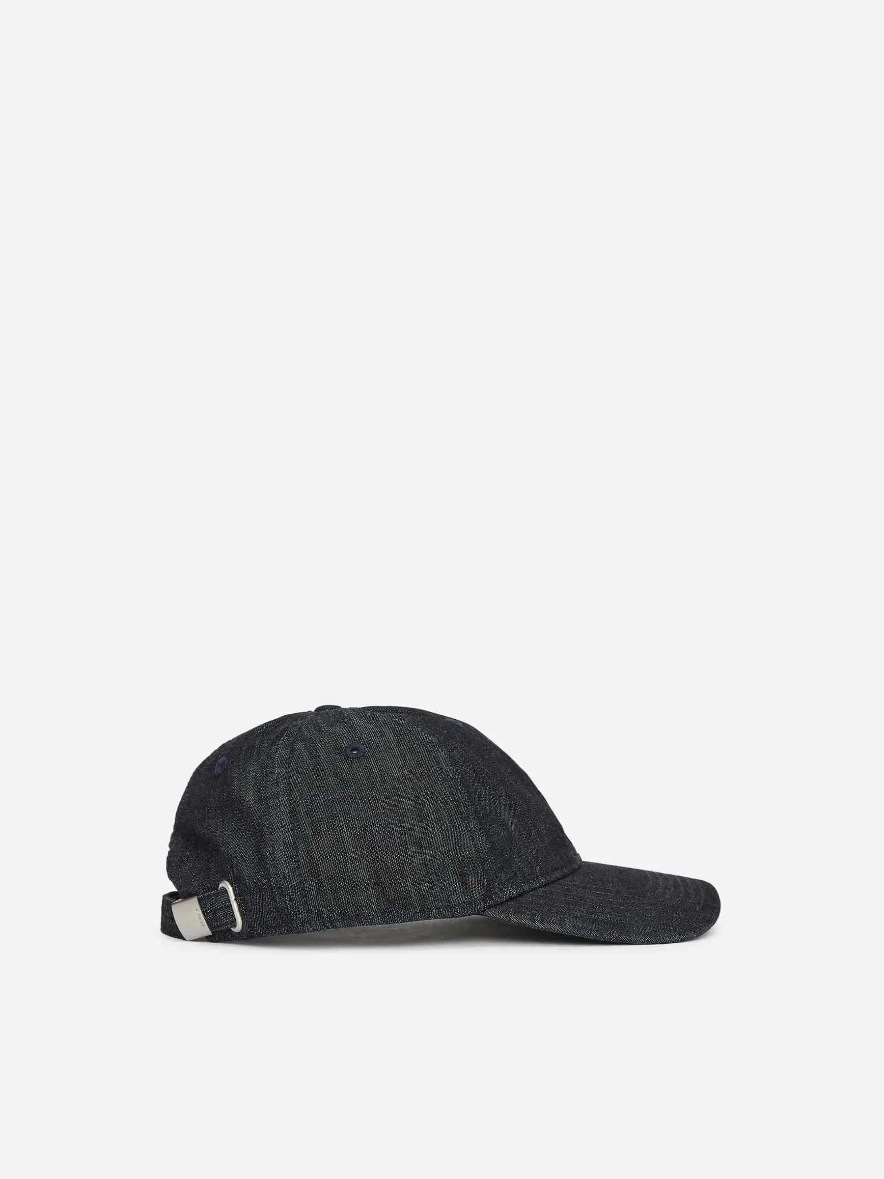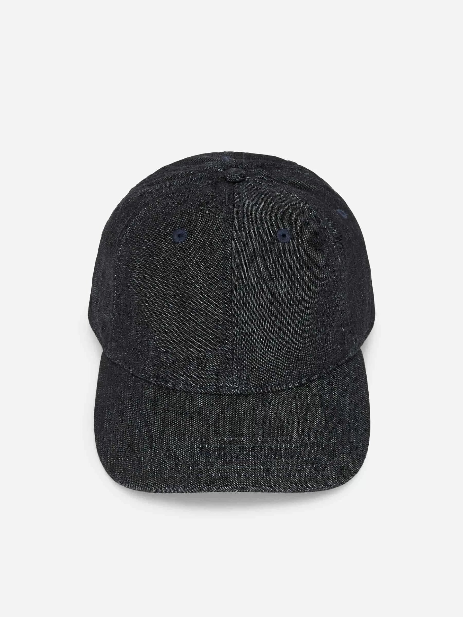 Cap aus Denim-Chambray. Ein klassischer 6-Panel-Stil mit gestickten Ösen. Verstellbarer Riemen hinten mit Metallschnalle.