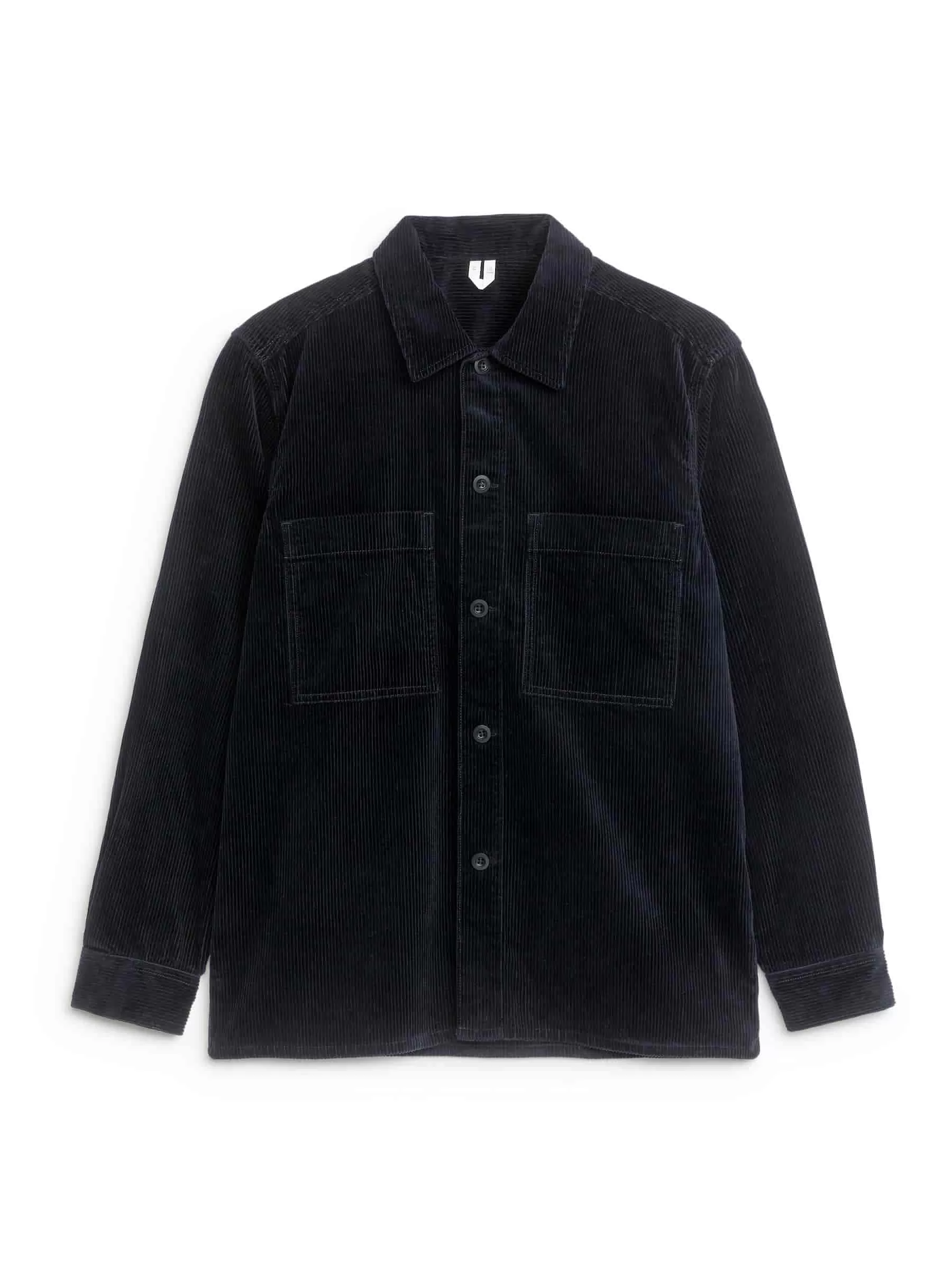 Overshirt aus Cord. Ein gerade geschnittenes Modell mit Knopfleiste vorne und zwei aufgesetzten Taschen auf der Brust. Passe hinten. Geknöpfte Manschetten.