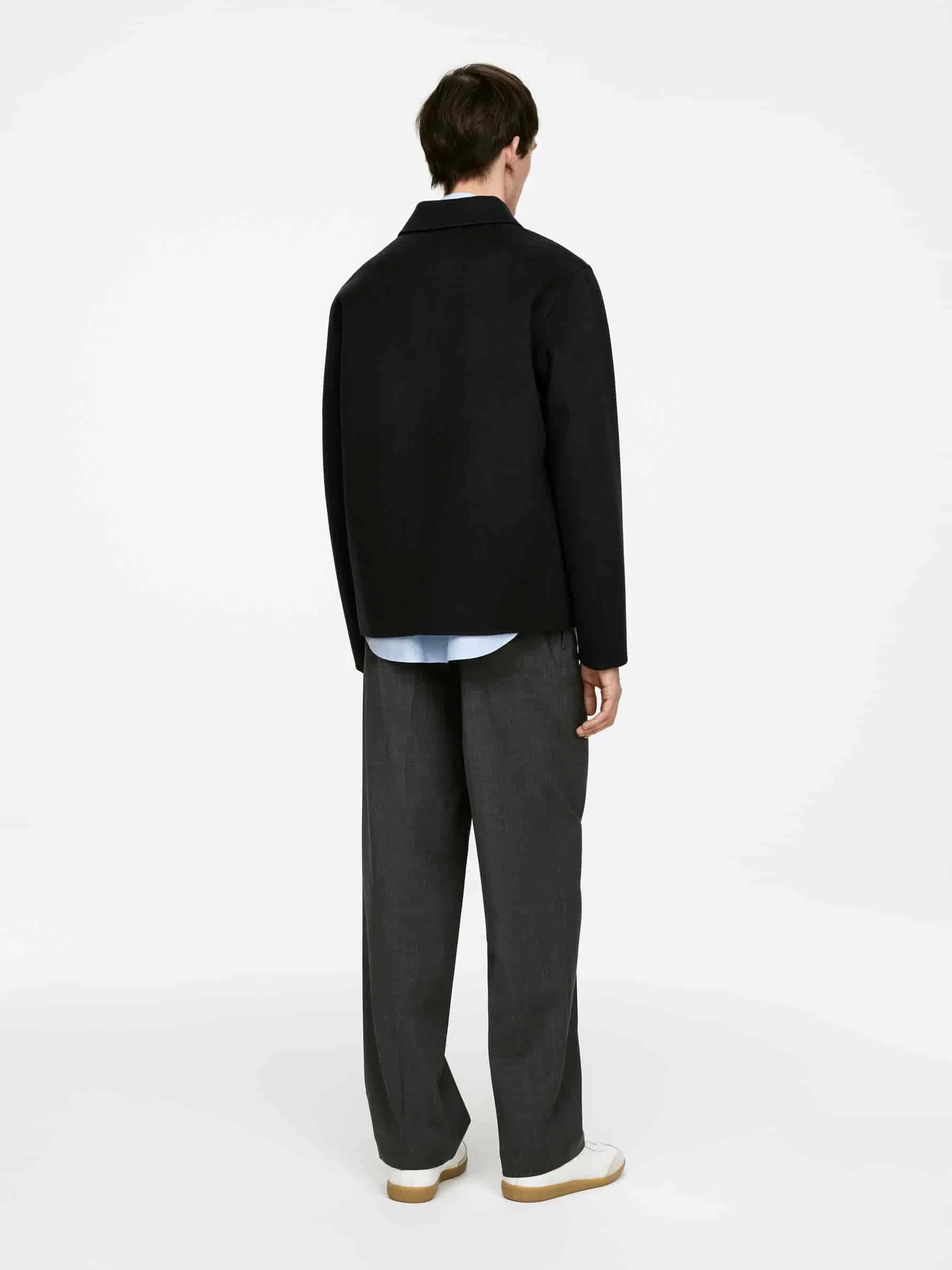 Kurze Jacke aus hochwertigem Doublé-Wollstoff. Verschluss mit Corozo-Knöpfen und Taschen in den Seitennähten. Komplett gefüttert. Entspannte Passform. Der Oberstoff enthält 60 % RWS-Wolle (TE-00047206). Produkte, die nach dem Responsible Wool Standard (RWS) zertifiziert sind, enthalten Wollfasern von Farmen, die unabhängig nach Tierschutz- und Landbewirtschaftungsanforderungen zertifiziert sind.