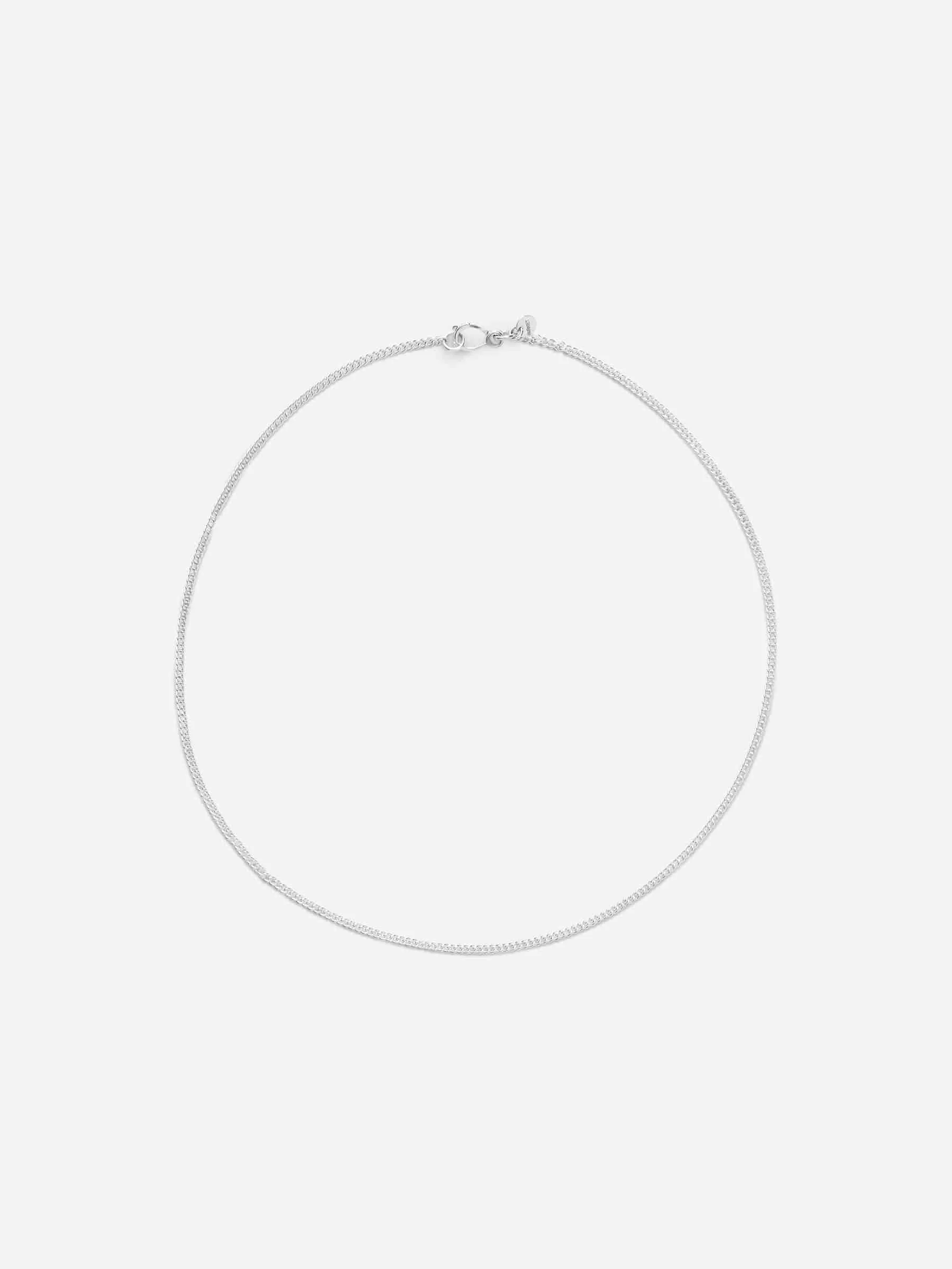 Dünne Halskette aus Sterlingsilber. Das Silber ist unbeschichtet und lässt sich daher leicht mit jedem Silberpoliertuch polieren. Länge 52 cm. Hakenverschluss.