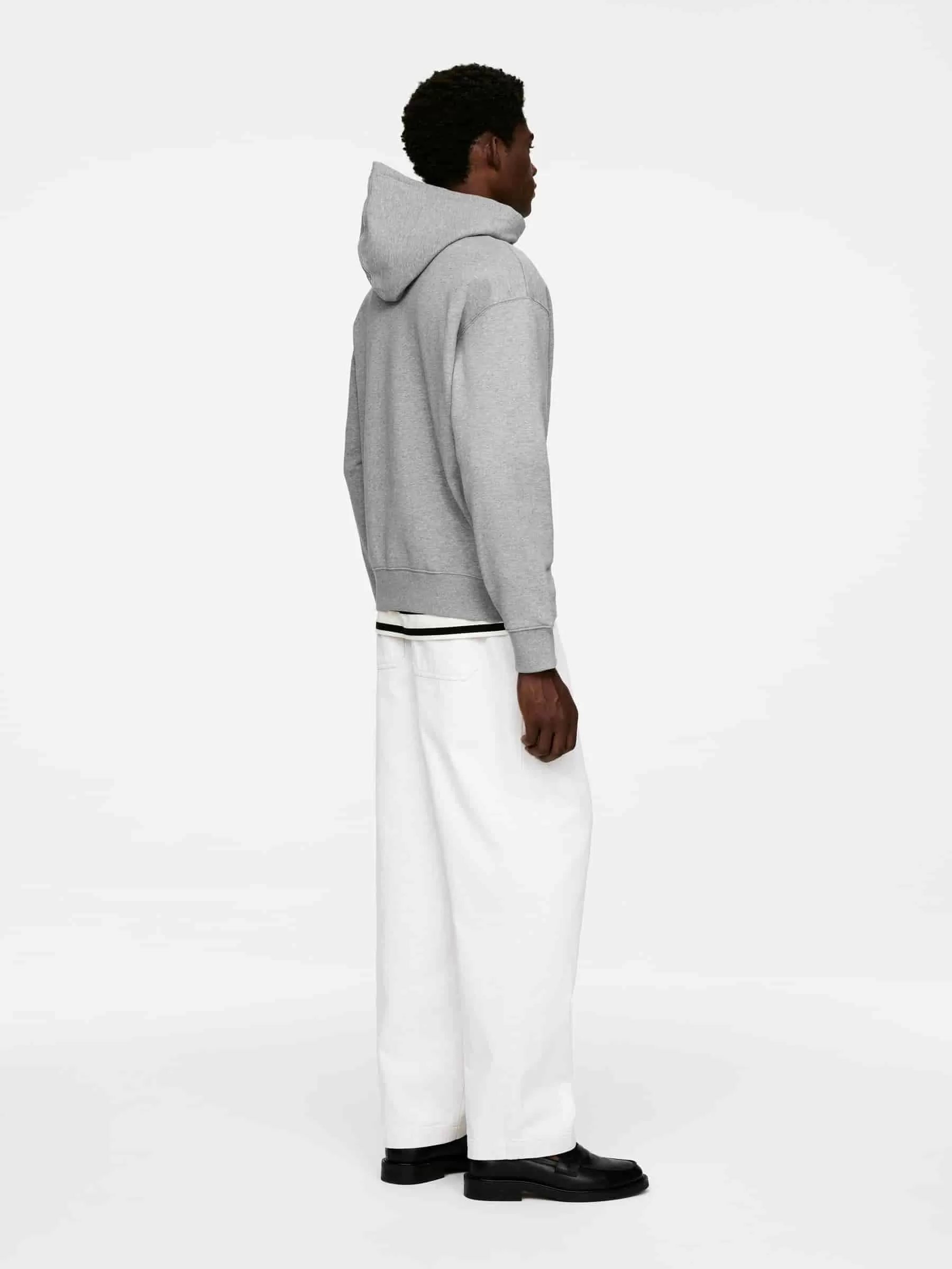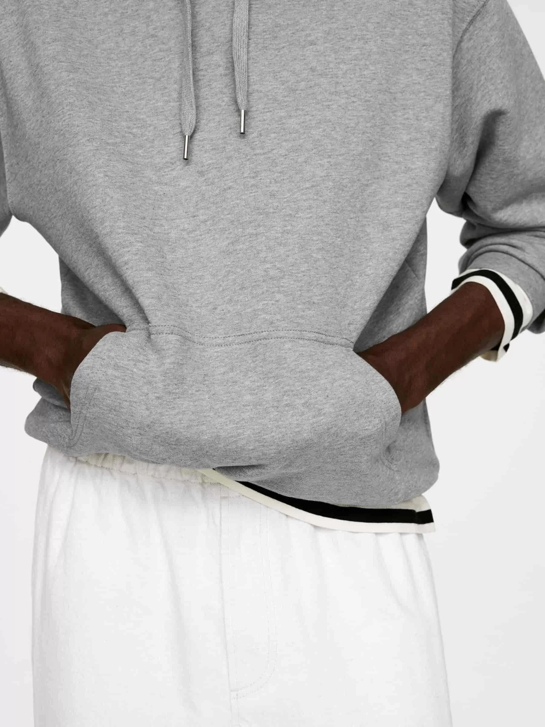 Hoodie aus French-Terry-Stoff aus Baumwolle. Ein locker geschnittener Stil mit leicht überschnittenen Schultern. Detailliert mit einer Kängurutasche vorne und gerippten Besätzen.