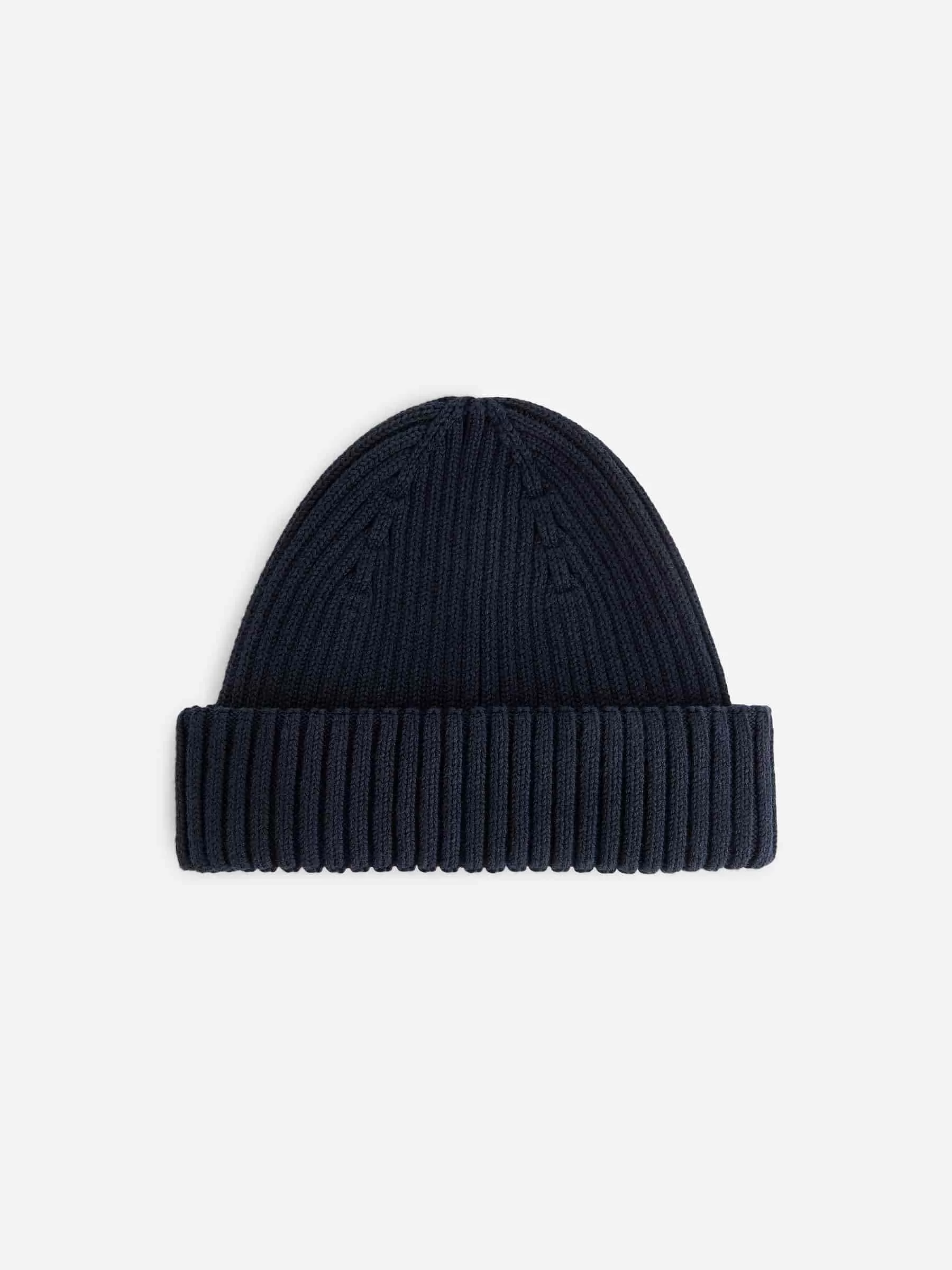 Beanie aus gerippter Baumwolle mit hochklappbarer Krempe.
