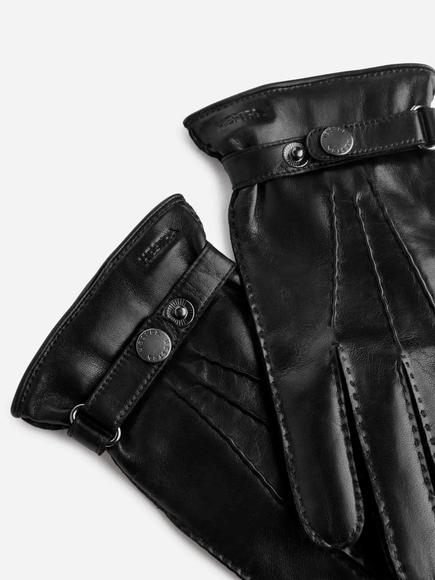 Ein schicker Winterhandschuh mit weichem, gestricktem Wollfutter von Hestra. Handgenäht aus geschmeidigem italienischem Lammnappa mit Riemen und Druckknopf am Handgelenk.