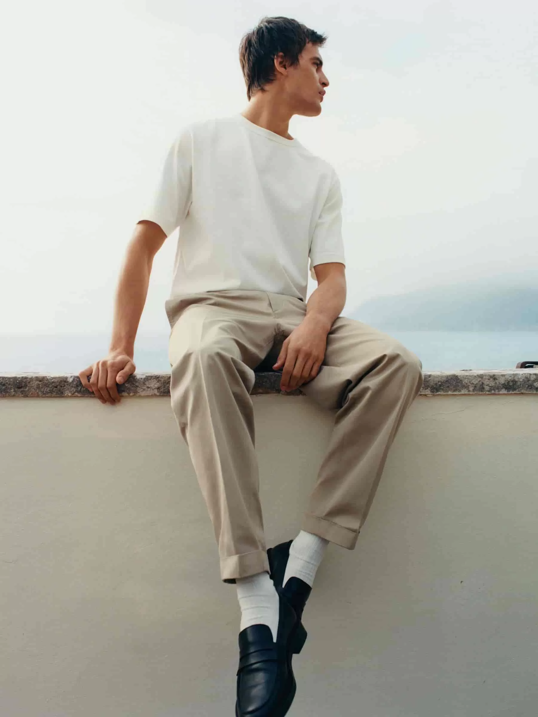 ARKE Herren Hochklappbare Baumwollhose Beige