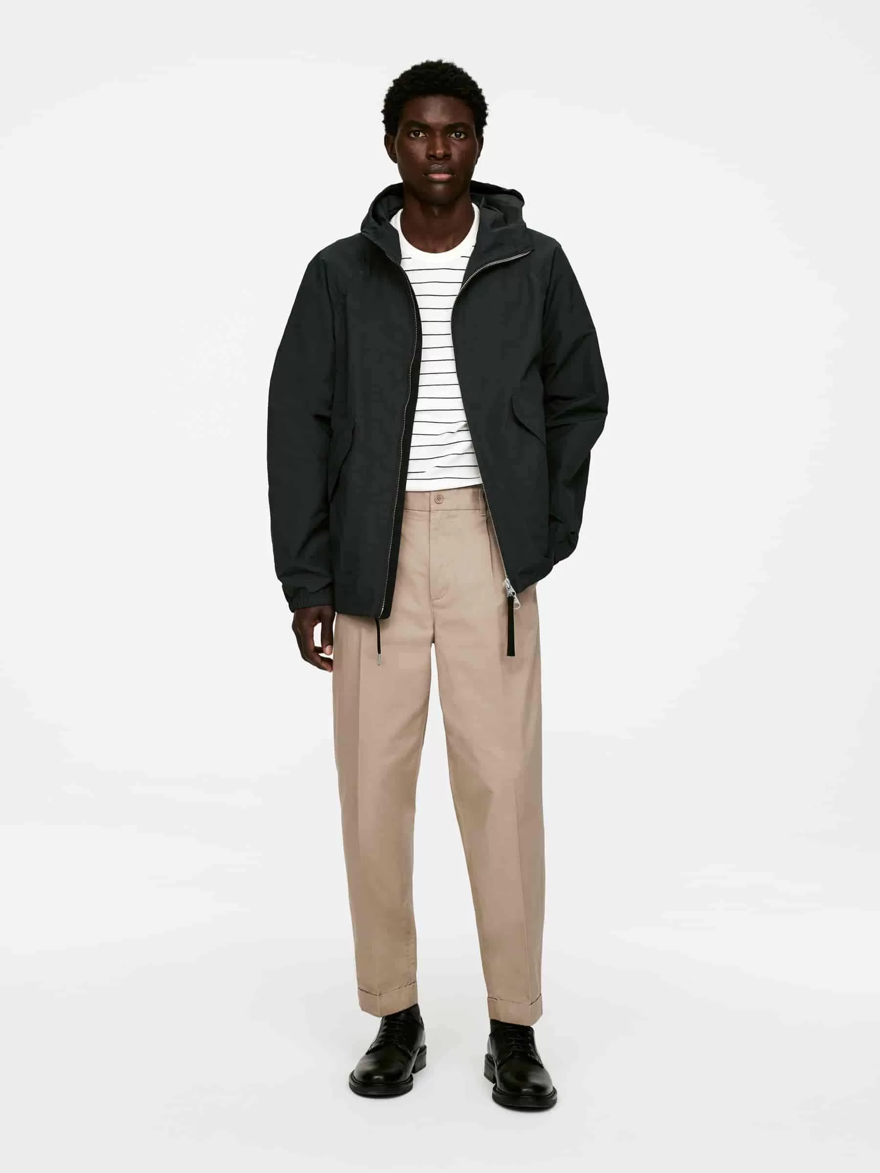 Baumwollhose mit geradem Beinschnitt und fester Falte am unteren Saum. Zwei schräge Taschen vorne und zwei Paspeltaschen mit Knöpfen hinten. Bund mit Klettverschluss und Reißverschluss im Hosenschlitz. Normale Passform.