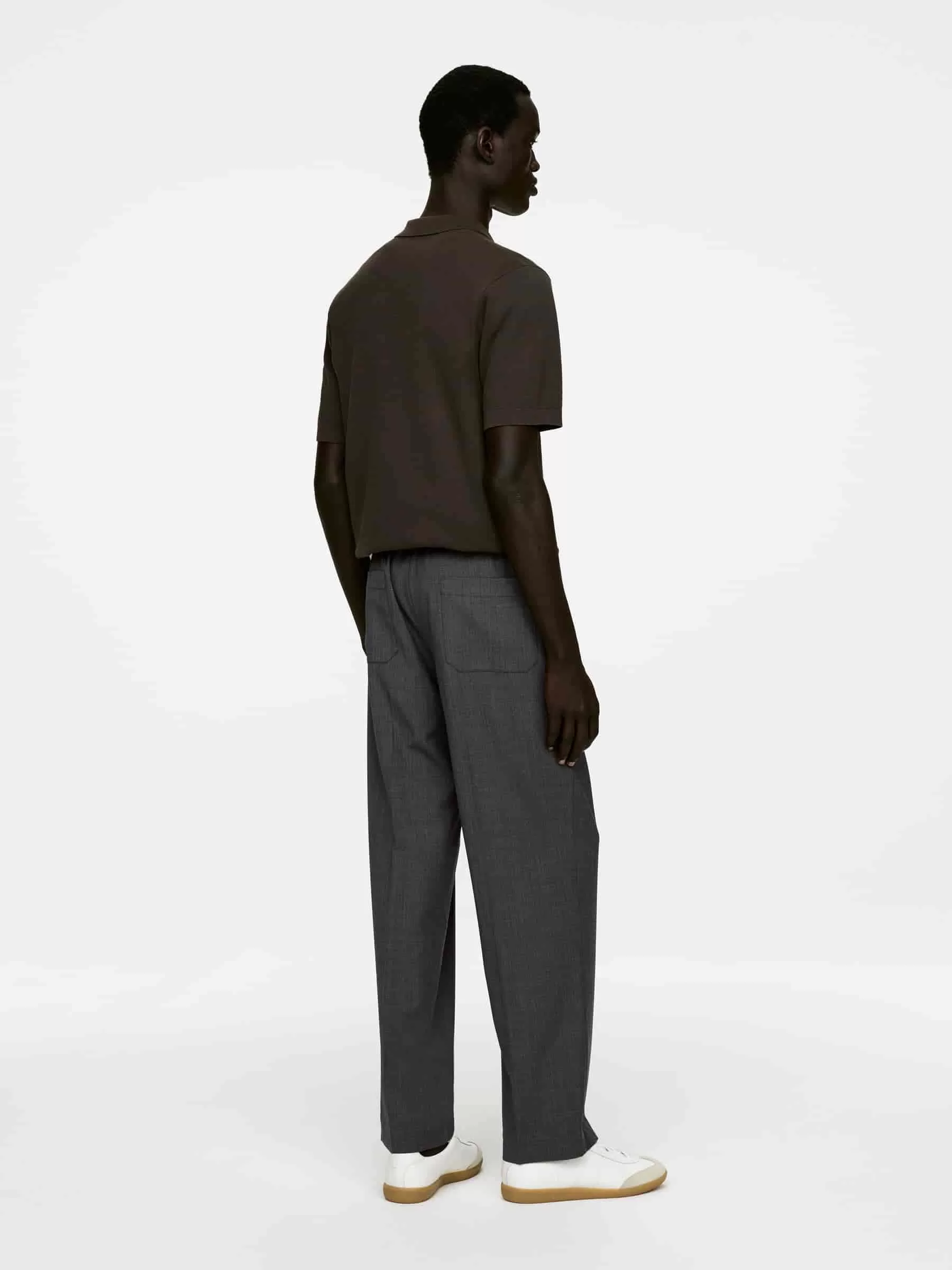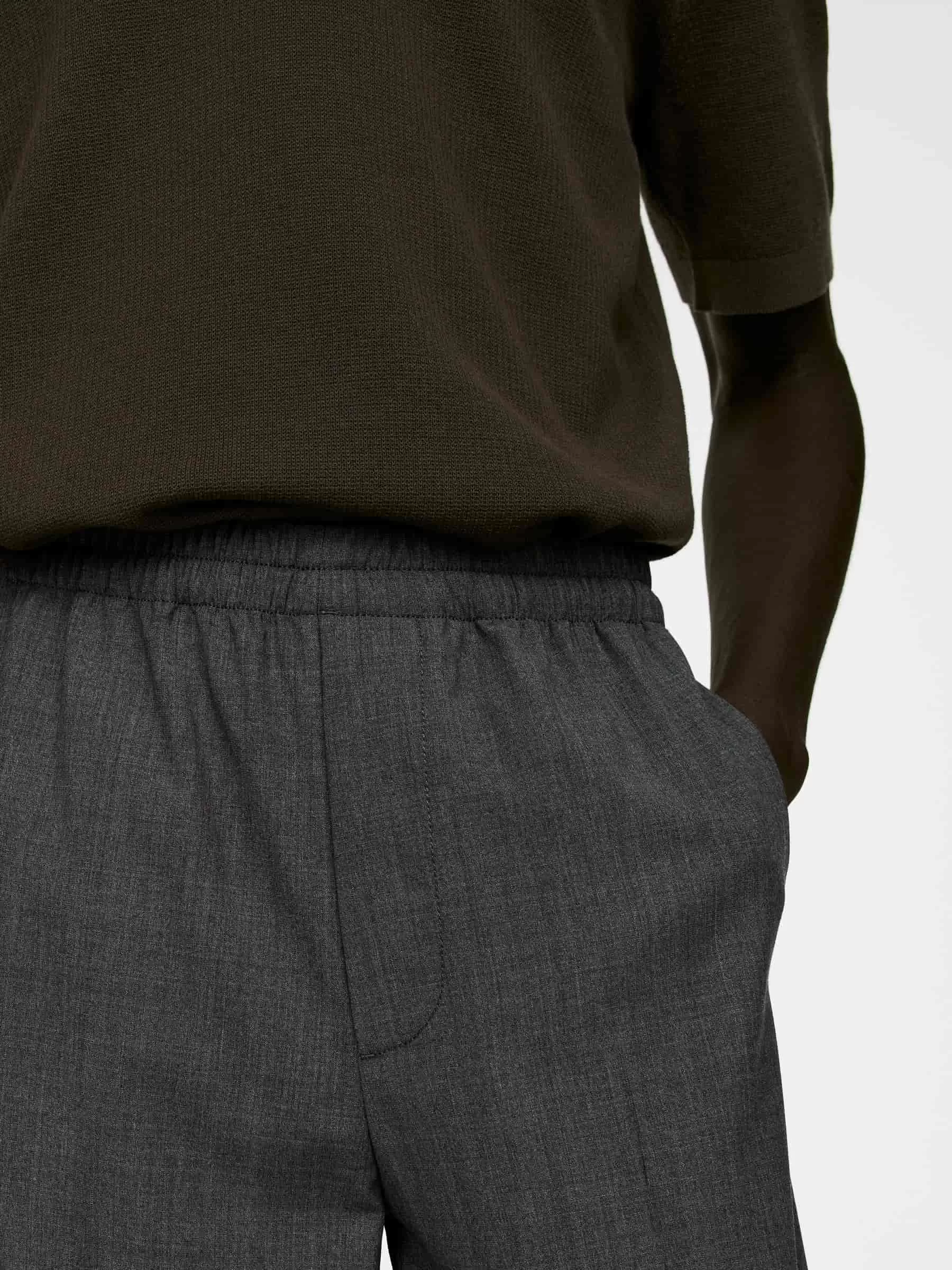 Wollhose mit Kordelzug am elastischen Bund. Knopfverschluss und Reißverschluss. Taschen an den Seitennähten und zwei aufgesetzte Taschen hinten. Normale Passform. Das Produkt enthält 100 % RWS-Wolle (TE-00047206). Produkte, die nach dem Responsible Wool Standard (RWS) zertifiziert sind, enthalten Wollfasern von Farmen, die unabhängig nach Tierschutz- und Landbewirtschaftungsanforderungen zertifiziert sind.