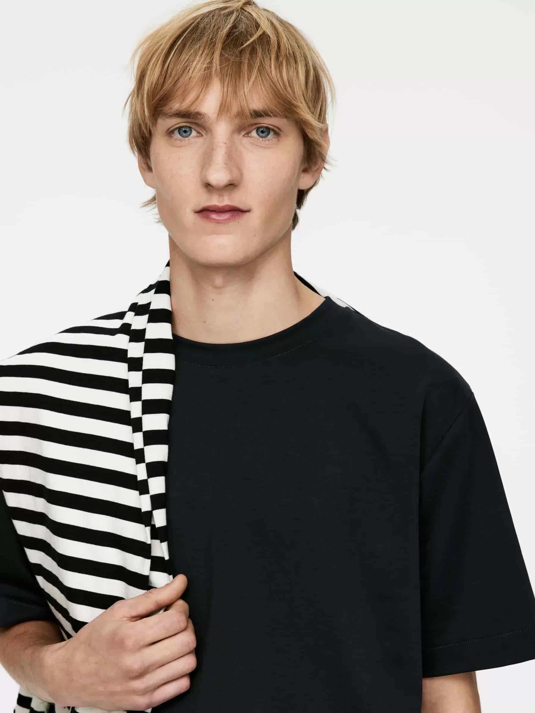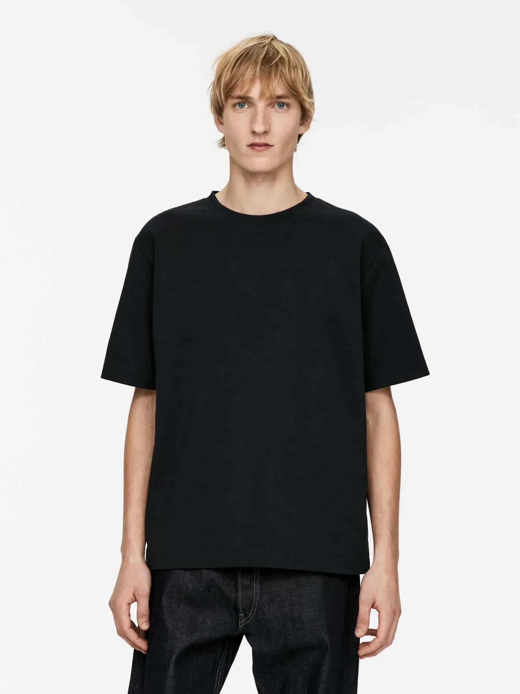 Dieses Baumwoll-T-Shirt ist aus schwerem Interlock-Jersey-Stoff gefertigt und bietet einen leichten Komfort-Stretch. Ein Rundhalsausschnitt mit normaler Passform.