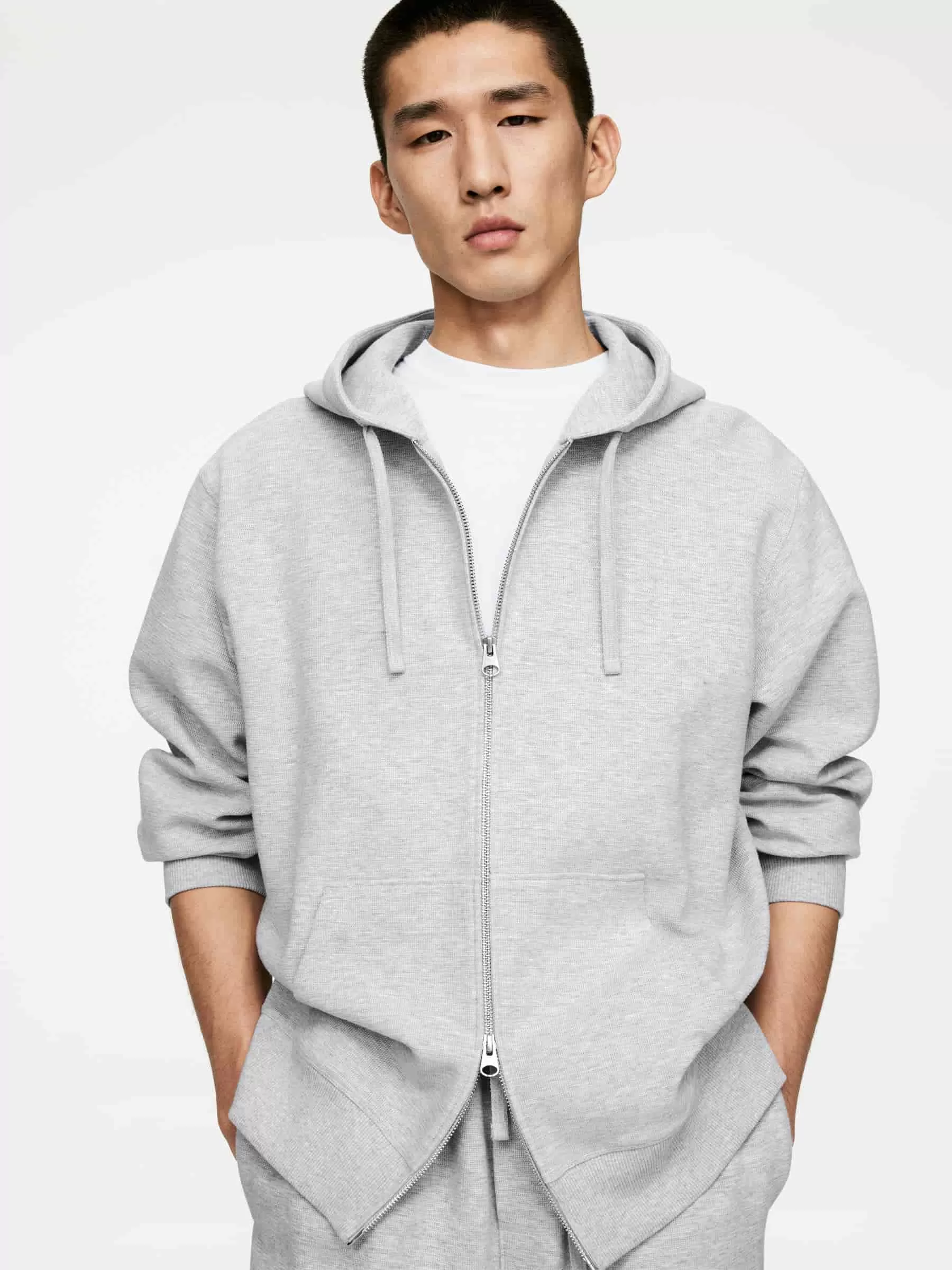 ARKE Herren Kapuzenpullover mit Reißverschluss Graue Melange