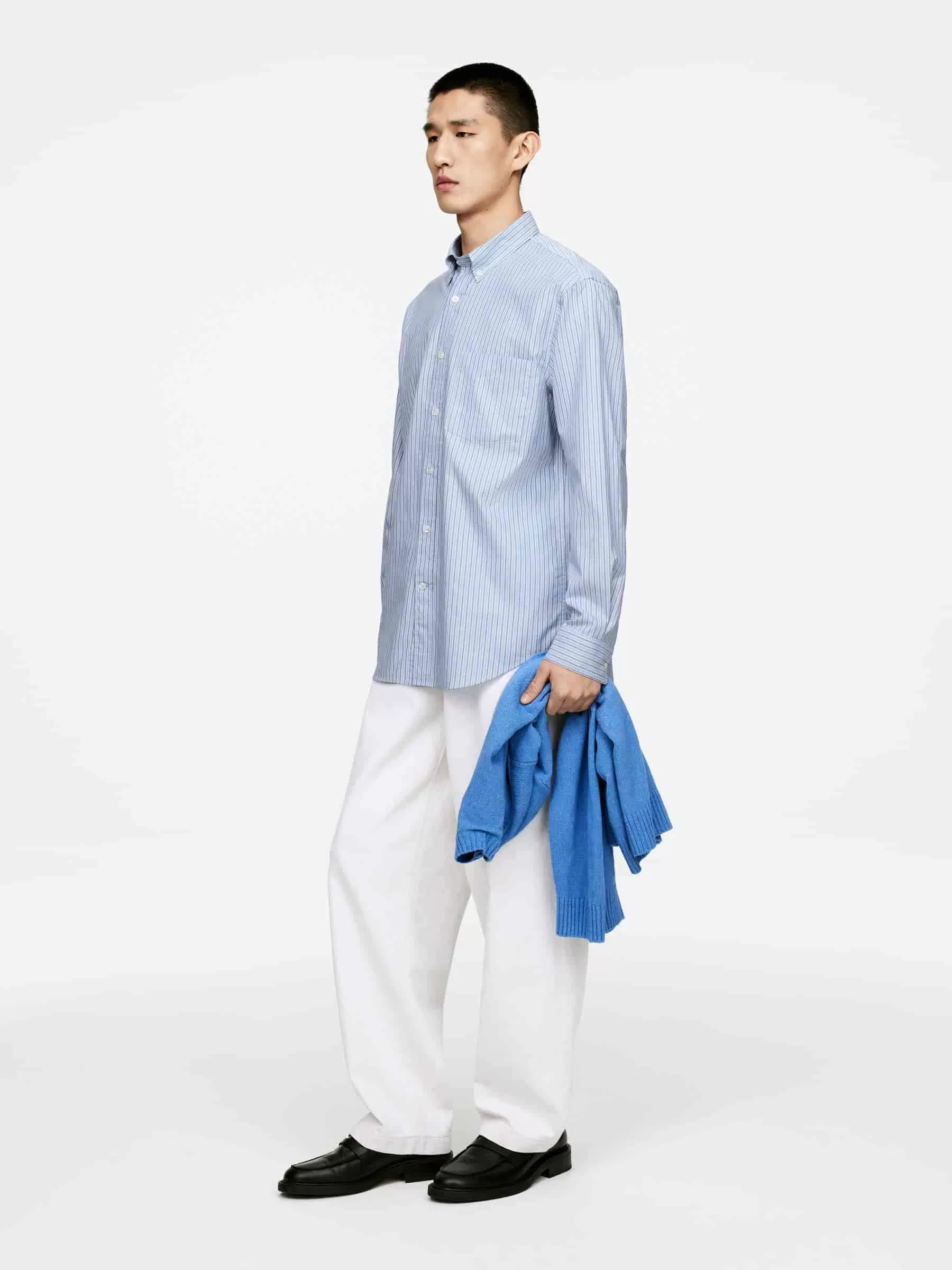 Baumwollhemdschnitt für eine entspannte Passform. Mit Button-Down-Kragen, Knopfleiste vorne und einer einzelnen Brusttasche. Geknöpfte Manschetten. Geschwungener Saum.