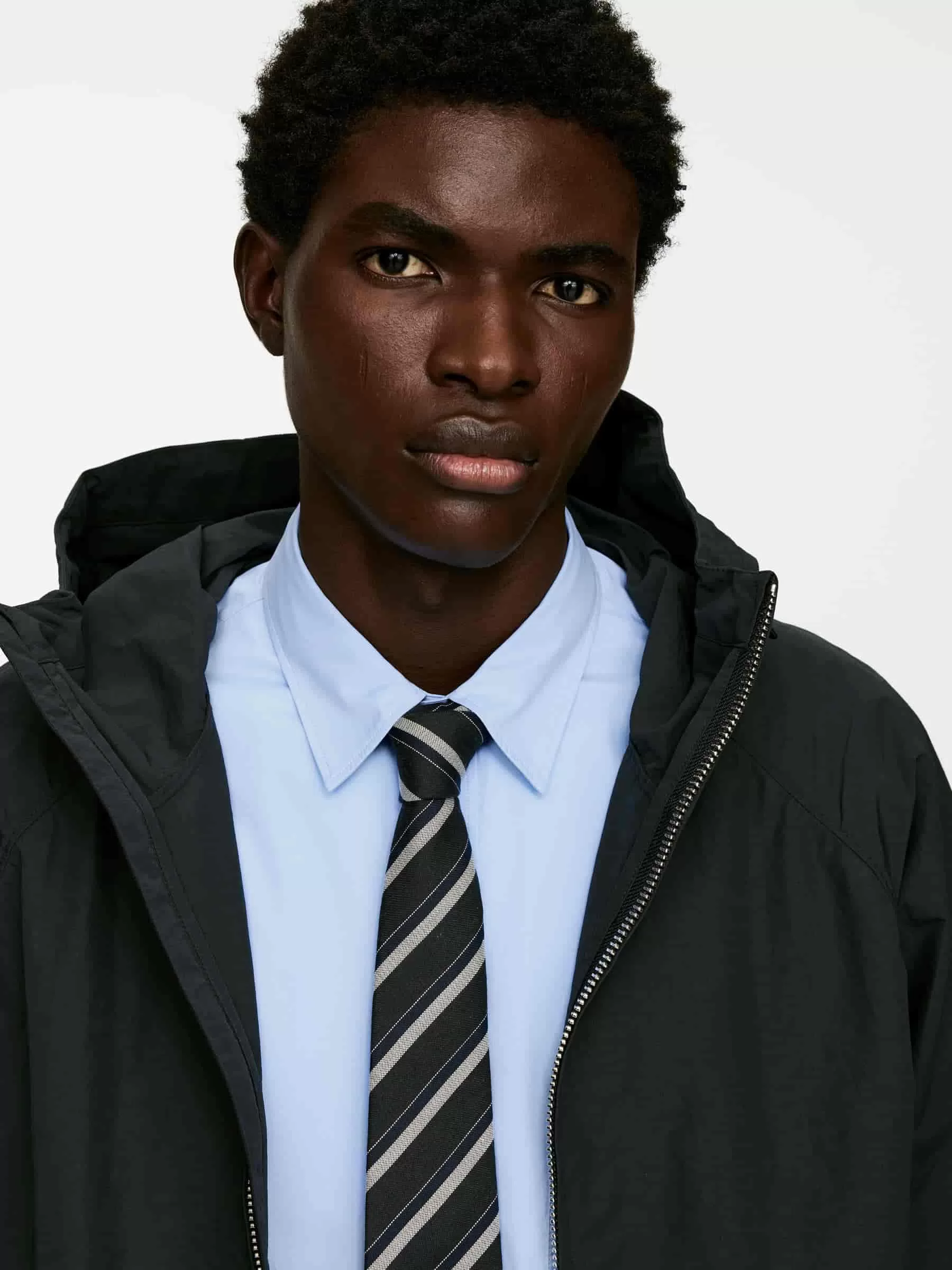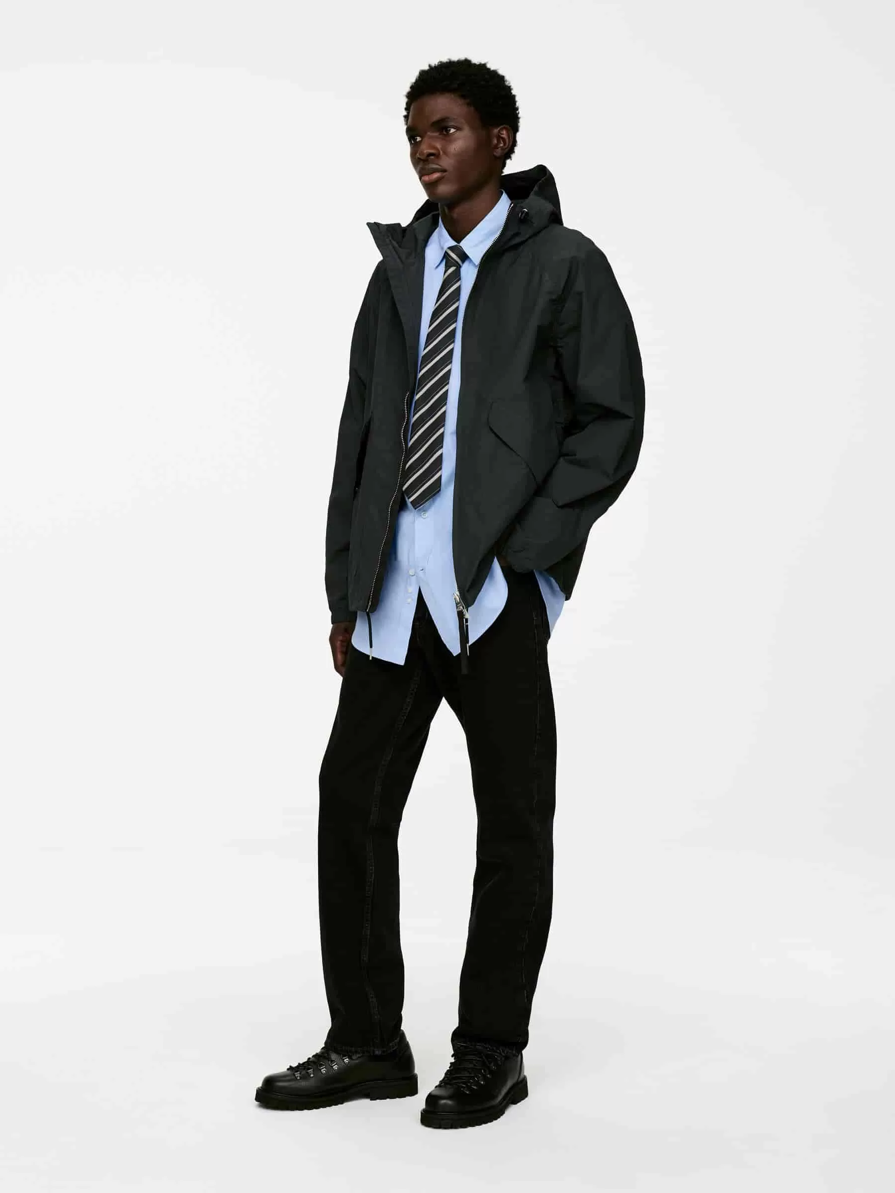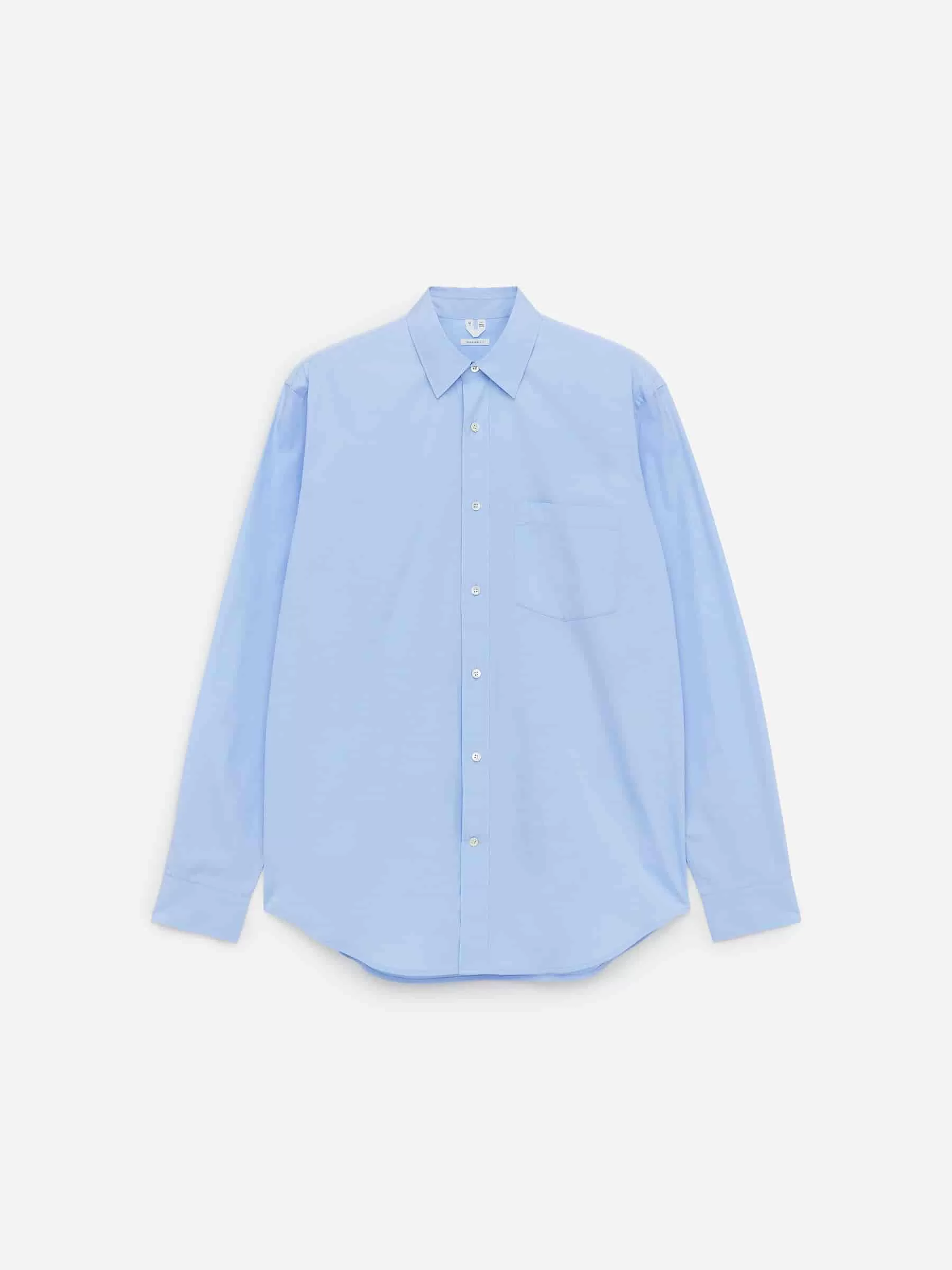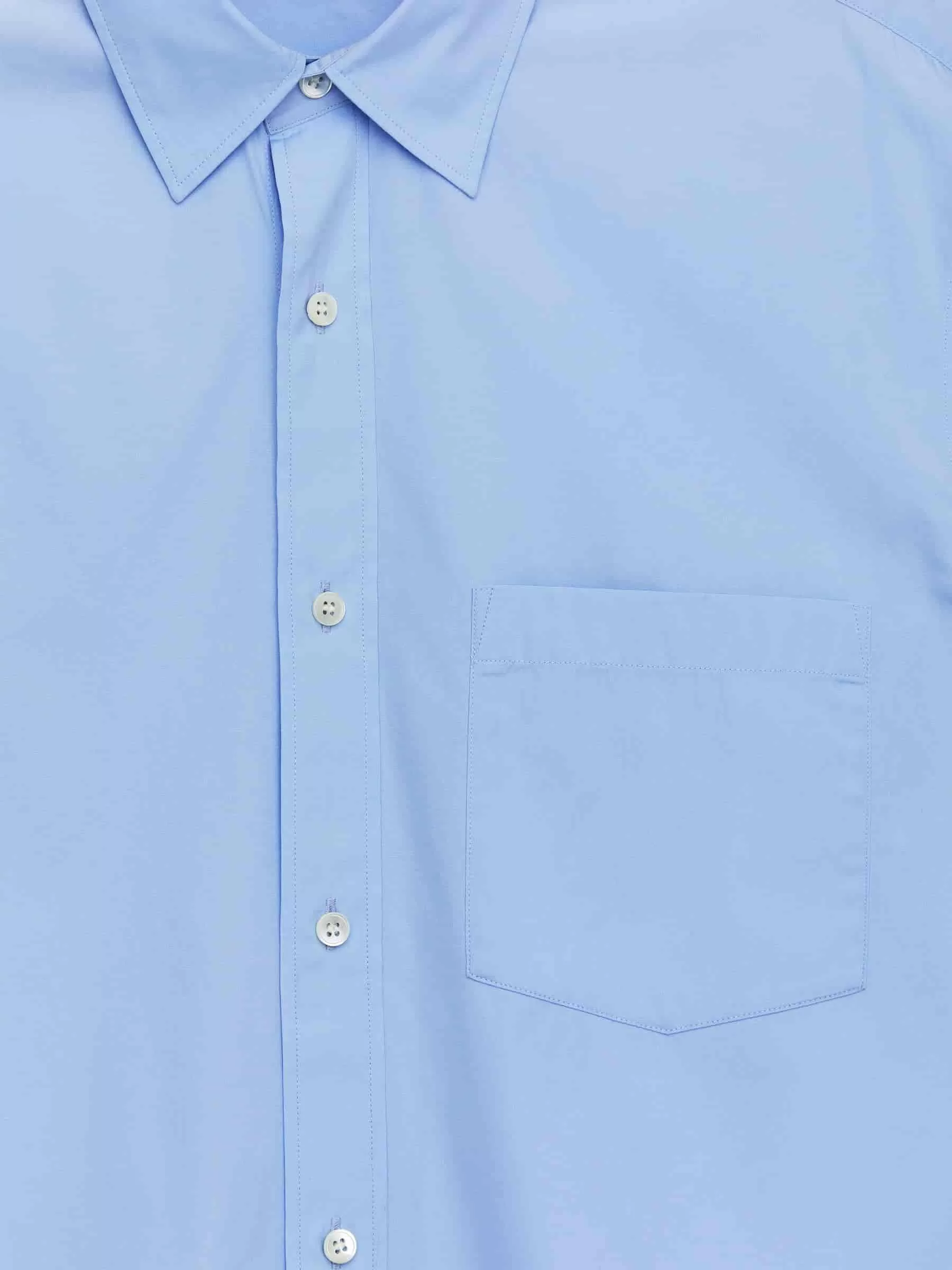 Hemd aus einem Popeline-Stoff aus Baumwolle genäht. Ausgestattet mit einer einzelnen Brusttasche und geknöpften Manschetten. Entspannte Passform.