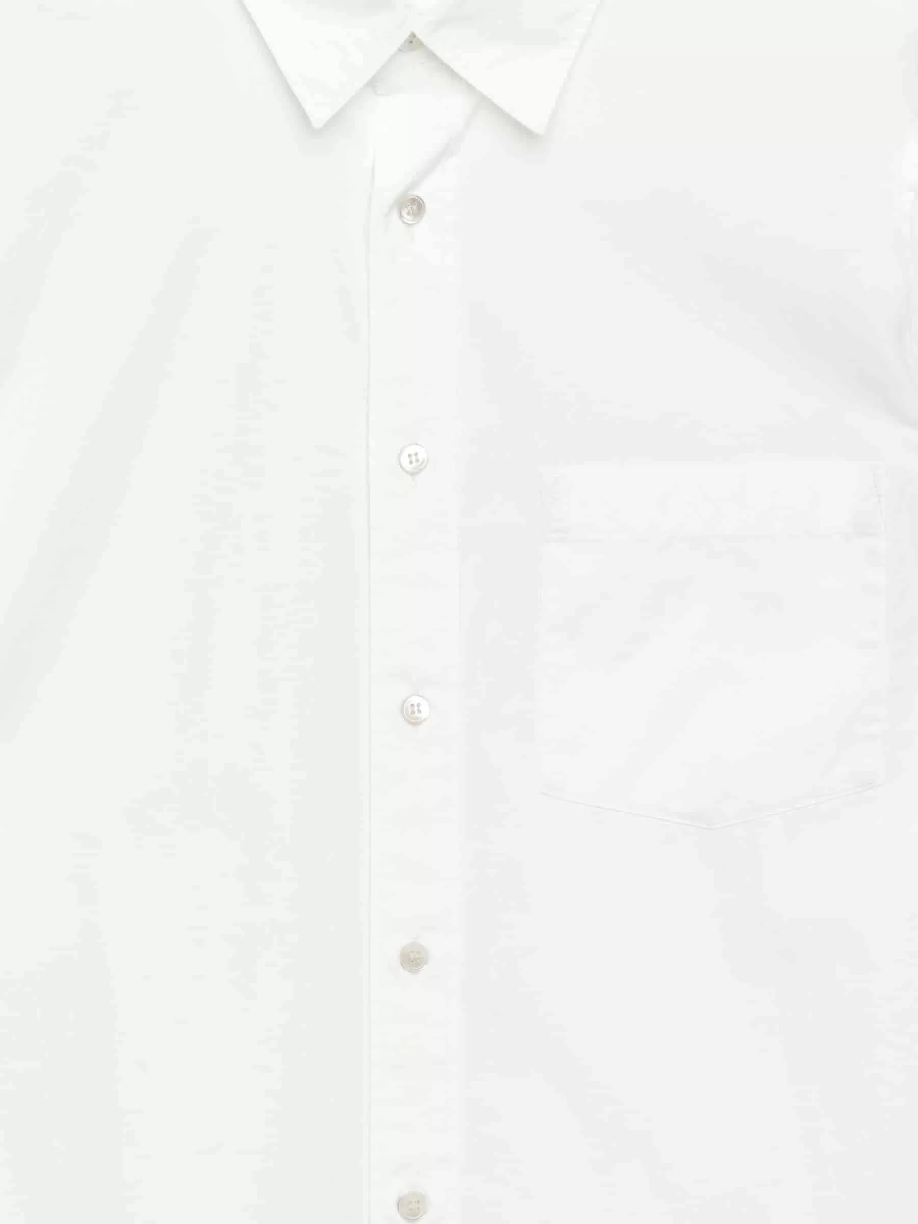 Hemd aus einem Popeline-Stoff aus Baumwolle genäht. Ausgestattet mit einer einzelnen Brusttasche und geknöpften Manschetten. Entspannte Passform.