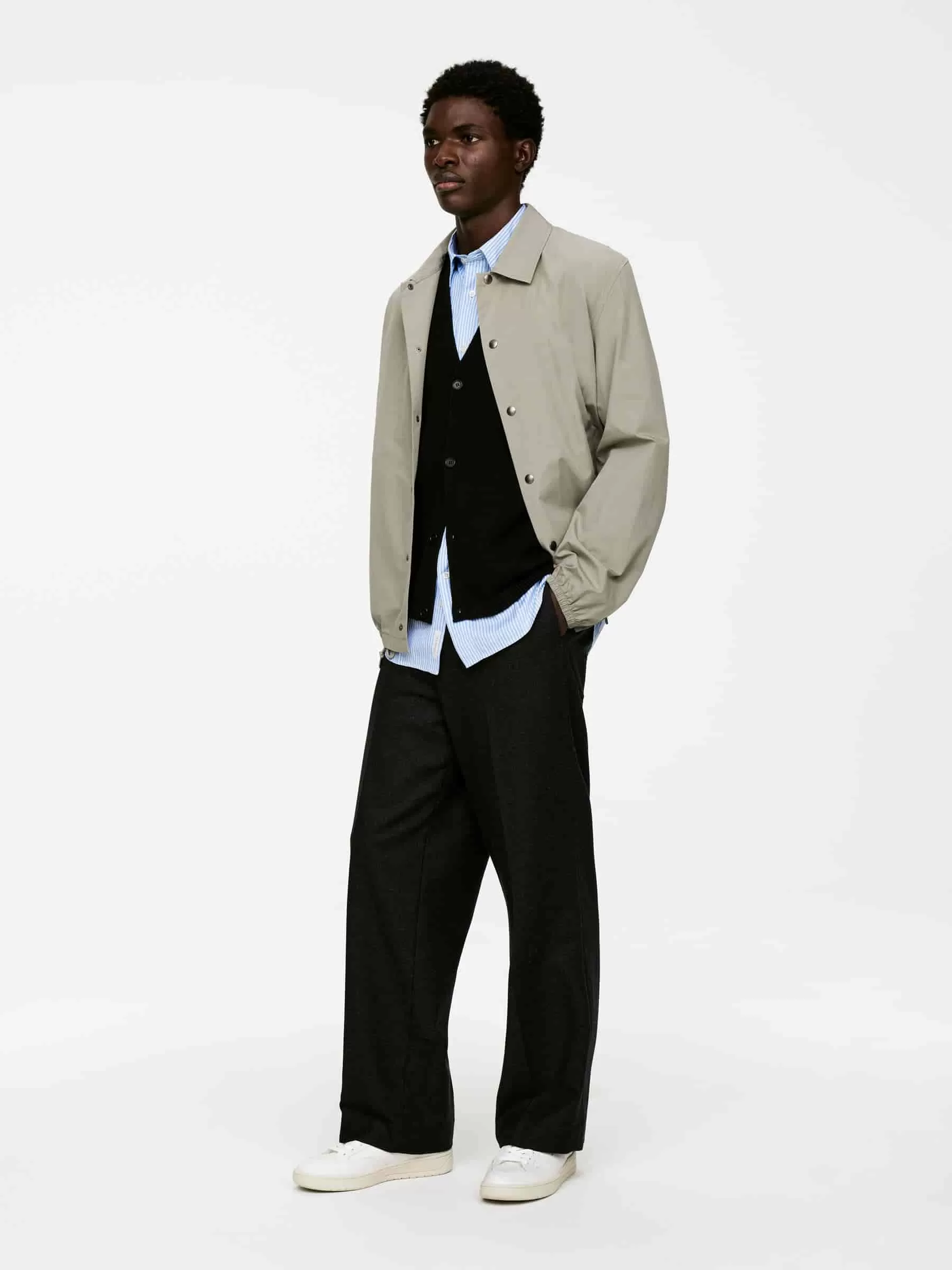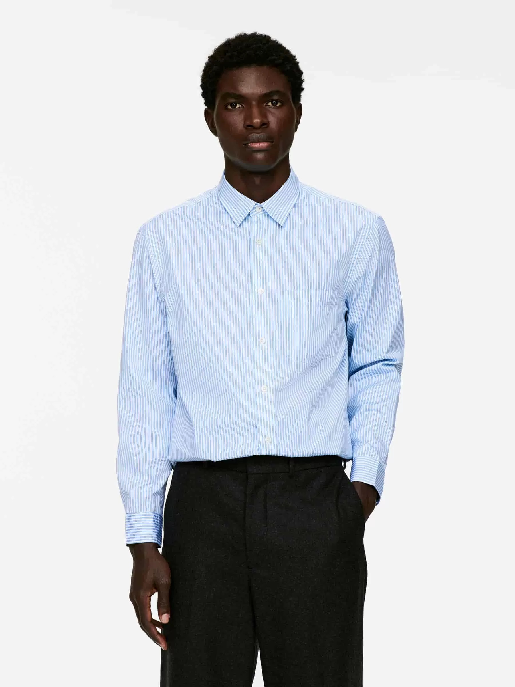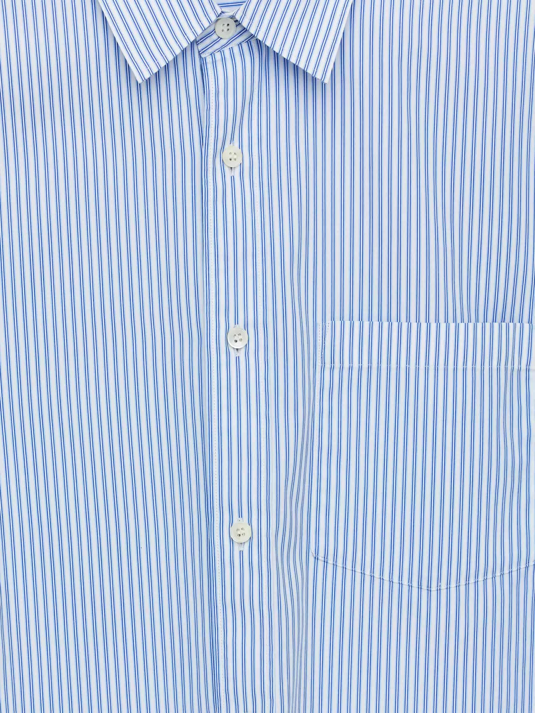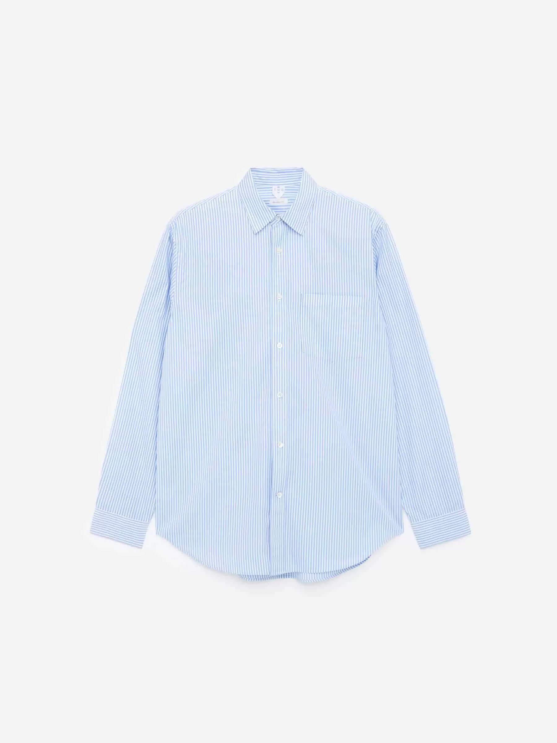Hemd aus einem Popeline-Stoff aus Baumwolle genäht. Ausgestattet mit einer einzelnen Brusttasche und geknöpften Manschetten. Entspannte Passform.