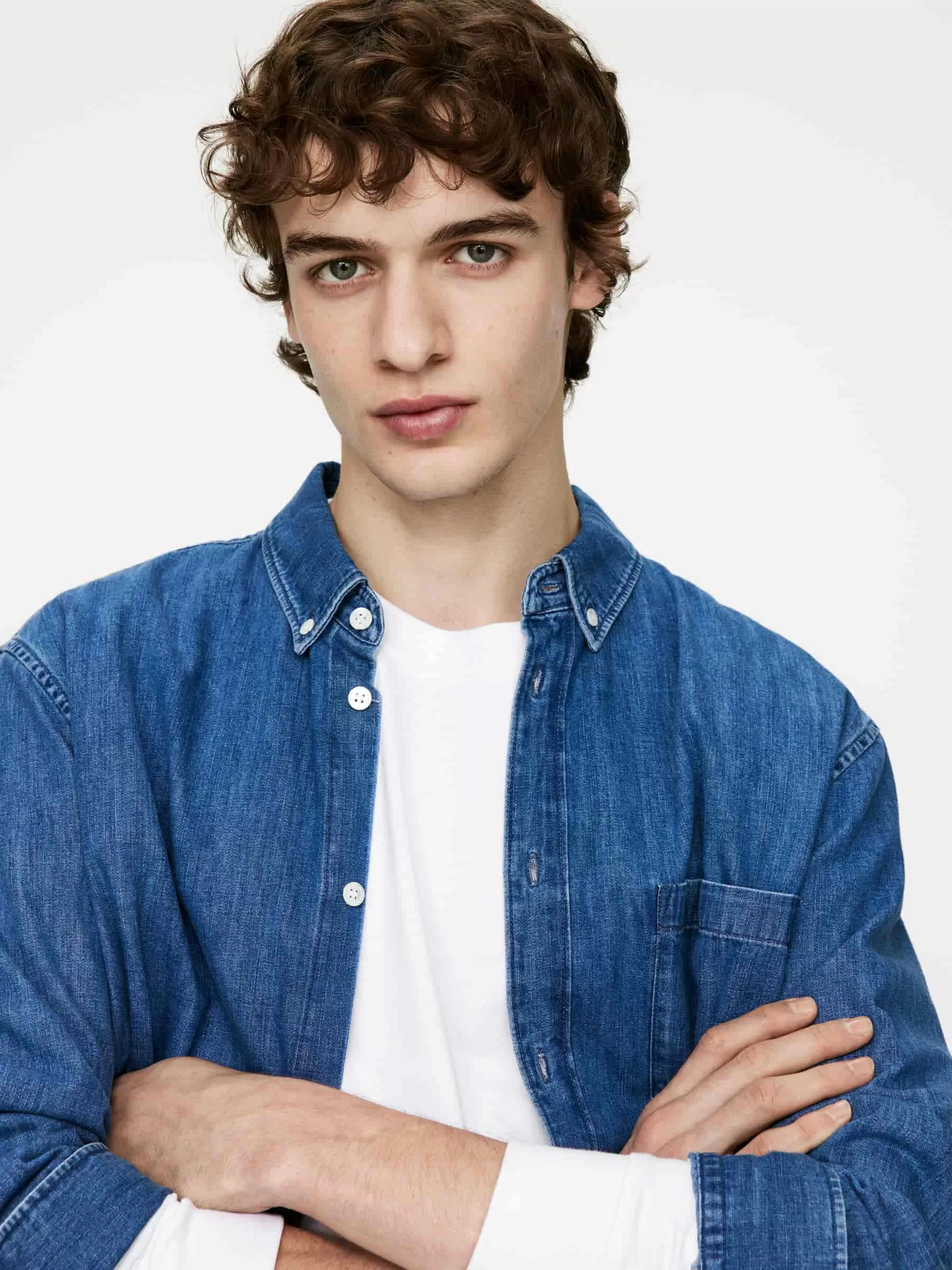 Langärmliges Baumwoll-T-Shirt mit lockerer Passform und überschnittenen Schultern. Rippbündchen an Bündchen und Hals.
