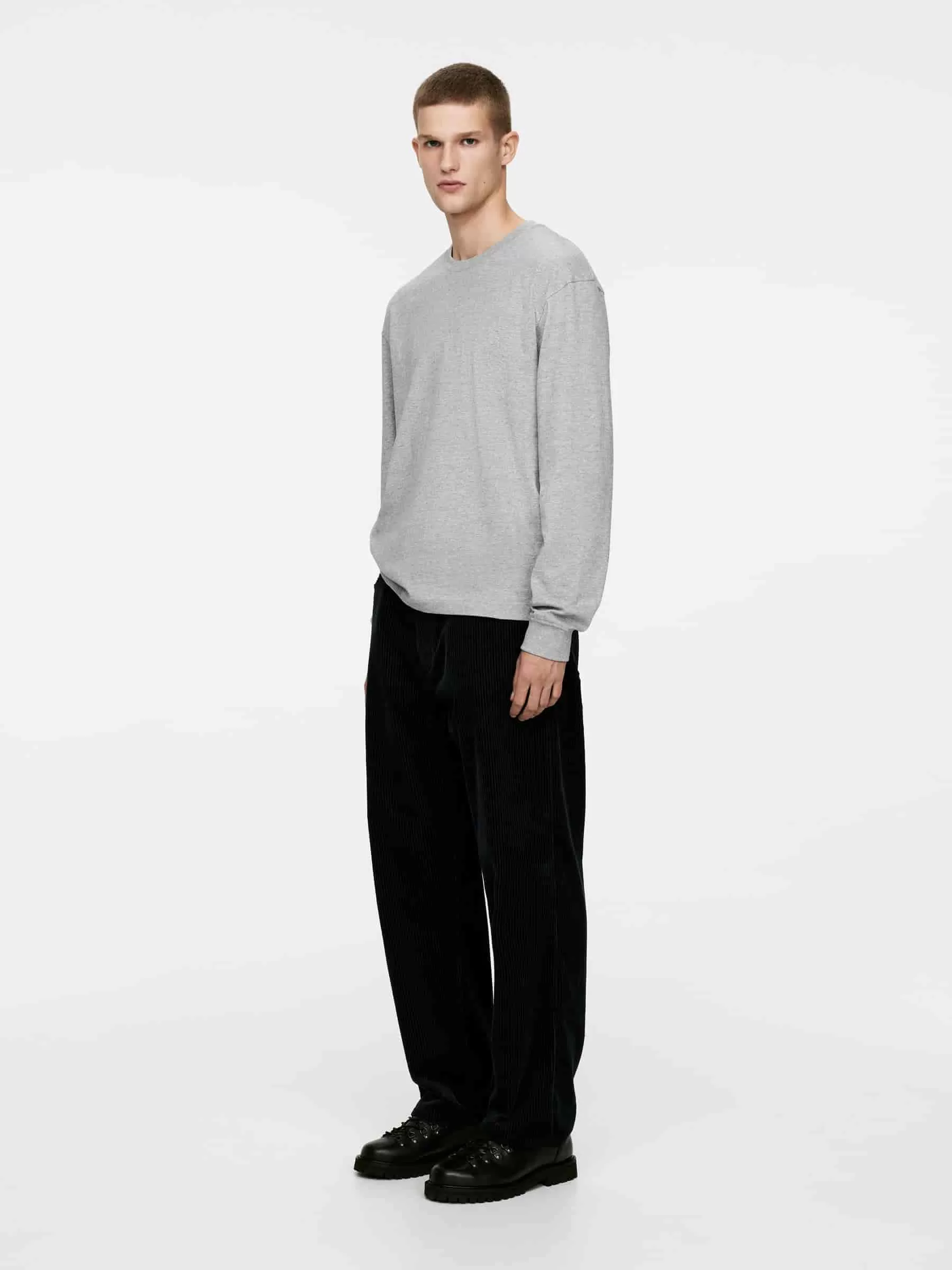 Langärmliges Baumwoll-T-Shirt mit lockerer Passform und überschnittenen Schultern. Rippbündchen an Bündchen und Hals.