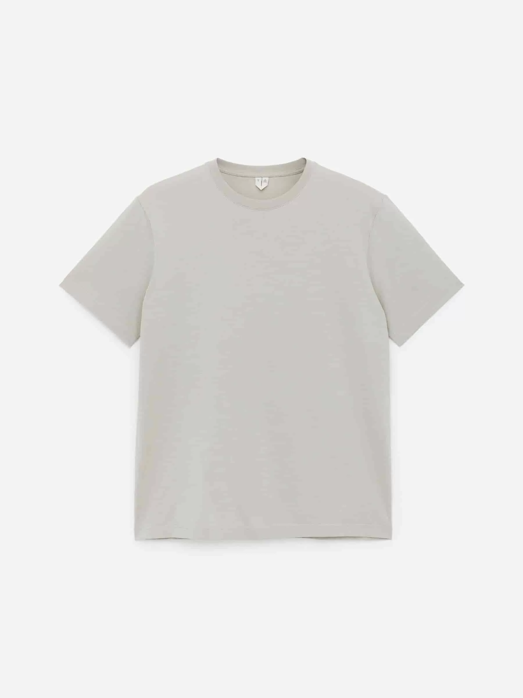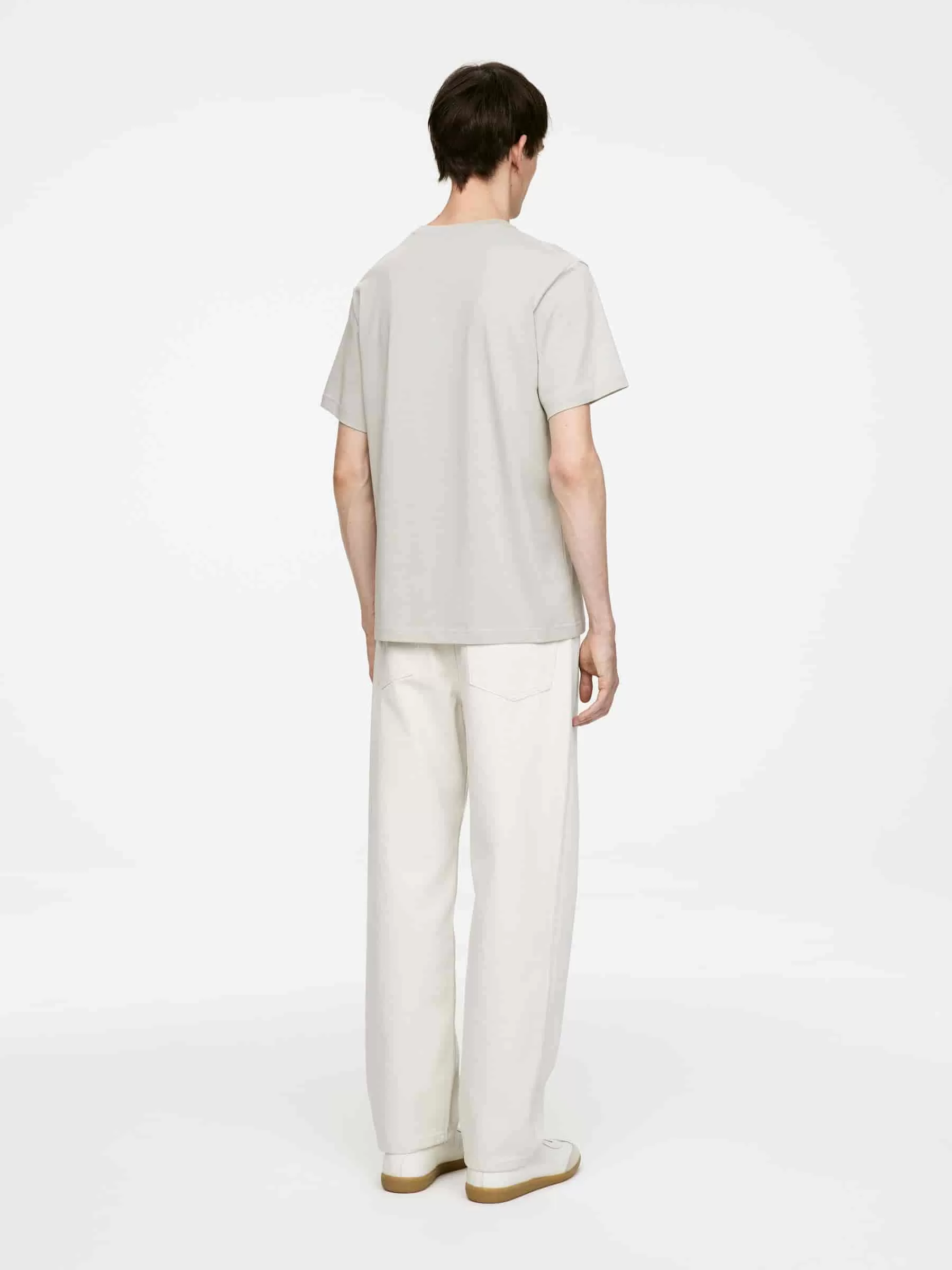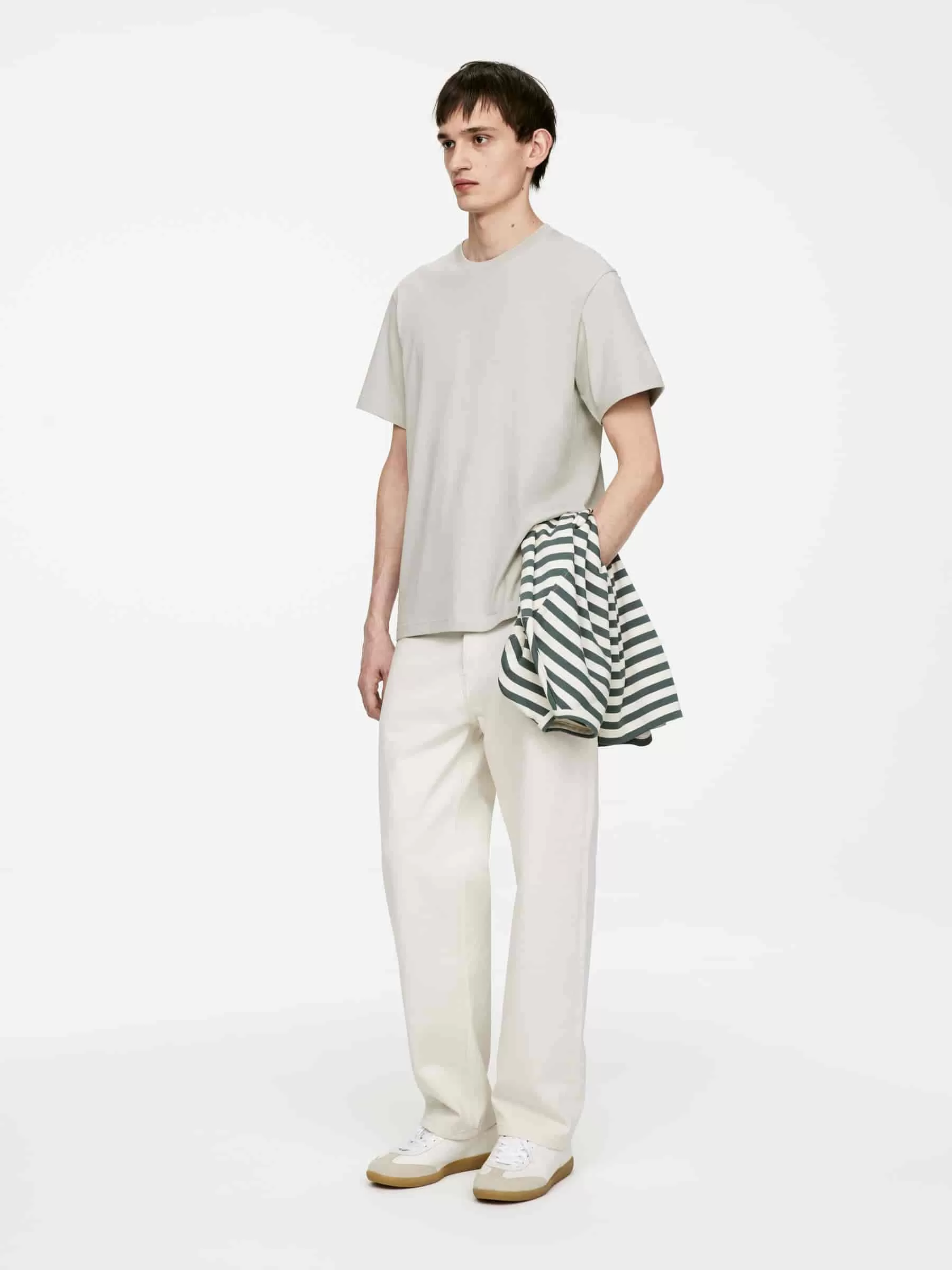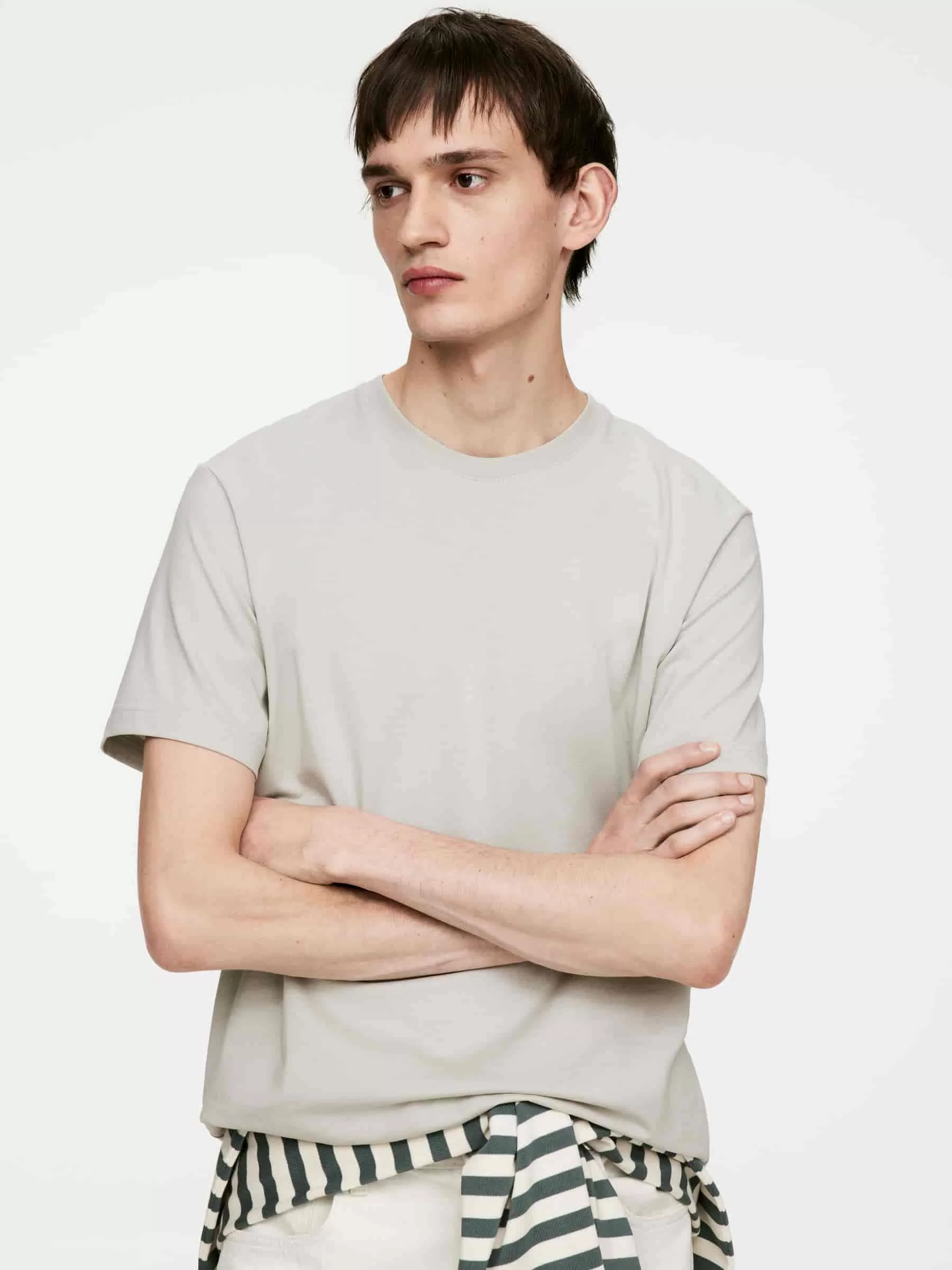Klassischer T-Shirt-Schnitt mit Rundhalsausschnitt für eine normale Passform. Es besteht aus 170 GSM Single Jersey, was darauf hinweist, dass es das leichteste der Standard-T-Shirts von ARKET ist.