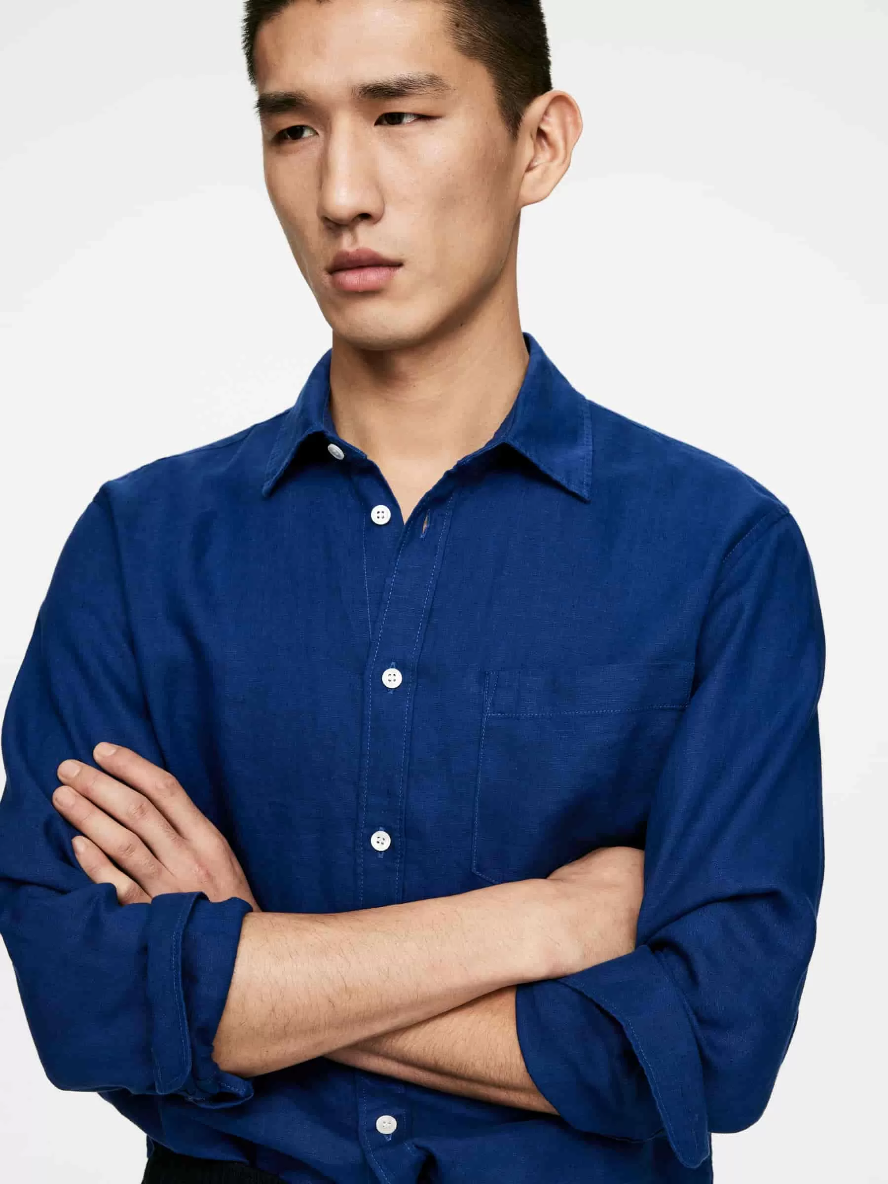 ARKE Herren Leinenhemd mit normaler Passform Blau