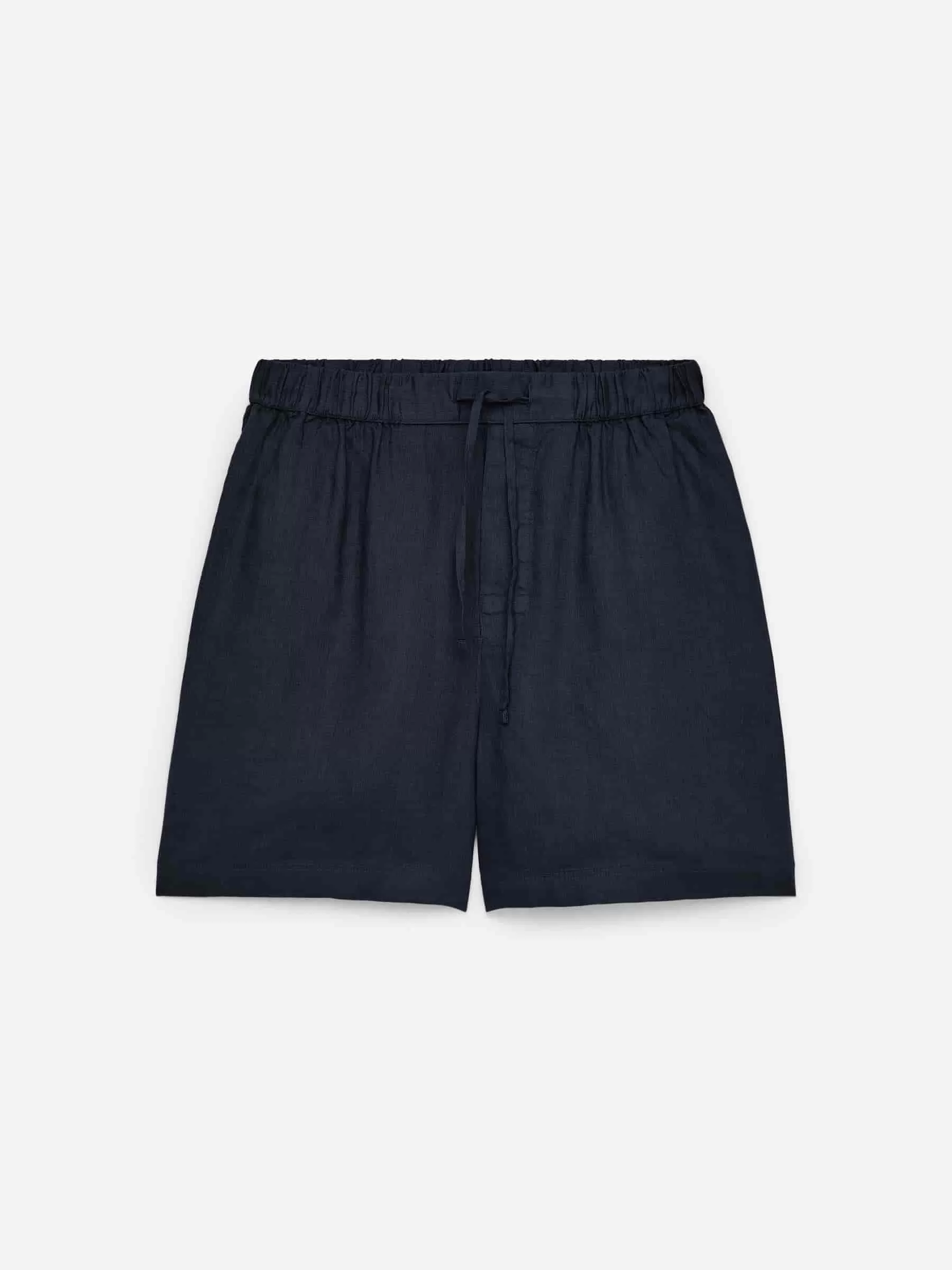 Leinenshorts mit normaler Passform. Ein Pull-on-Stil mit Gummizügen und Kordelzug in der Taille, Taschen an den Seitennähten und einer einzelnen aufgesetzten Tasche hinten. Knopfleiste.